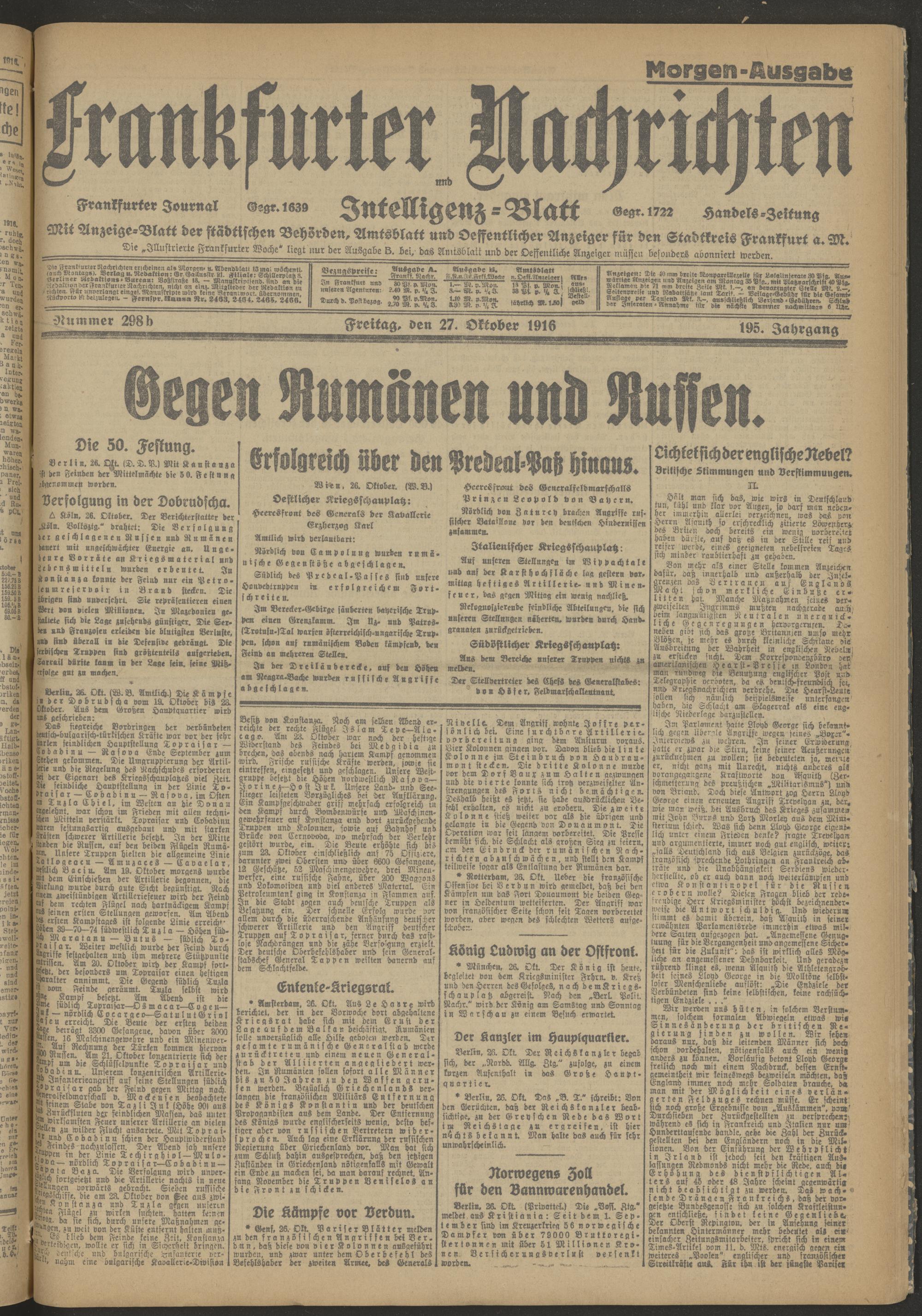 27.10.1916 Morgen-Ausgabe = Nr. 298 b
