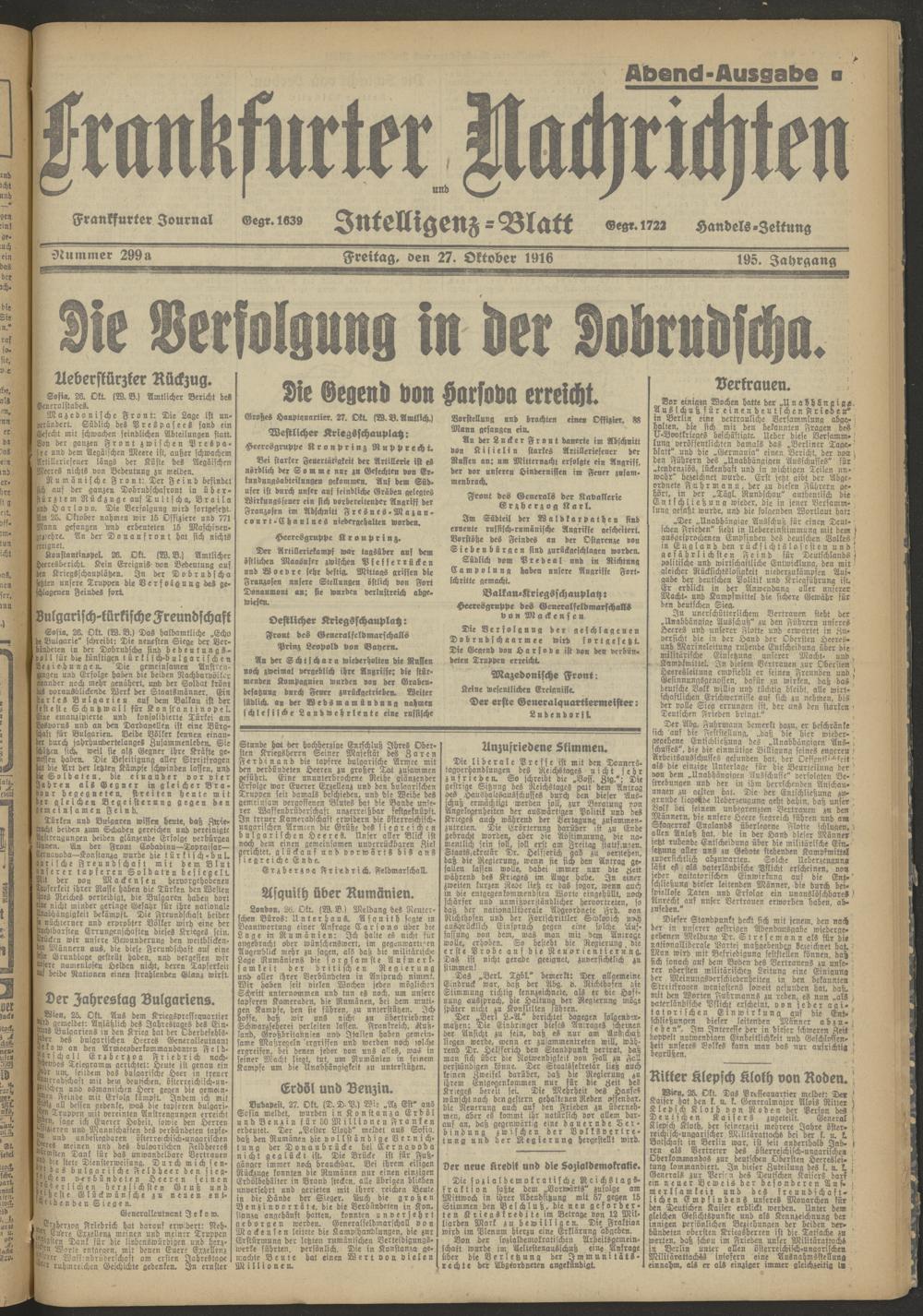 27.10.1916 Abend-Ausgabe = Nr. 299 a