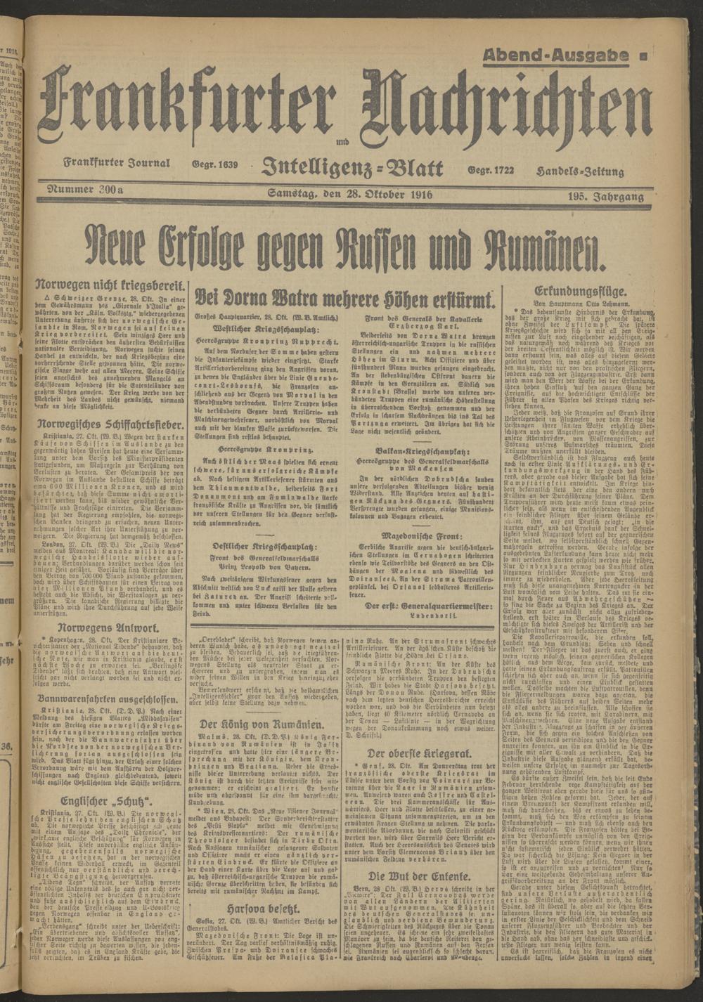 28.10.1916 Abend-Ausgabe = Nr. 300 a
