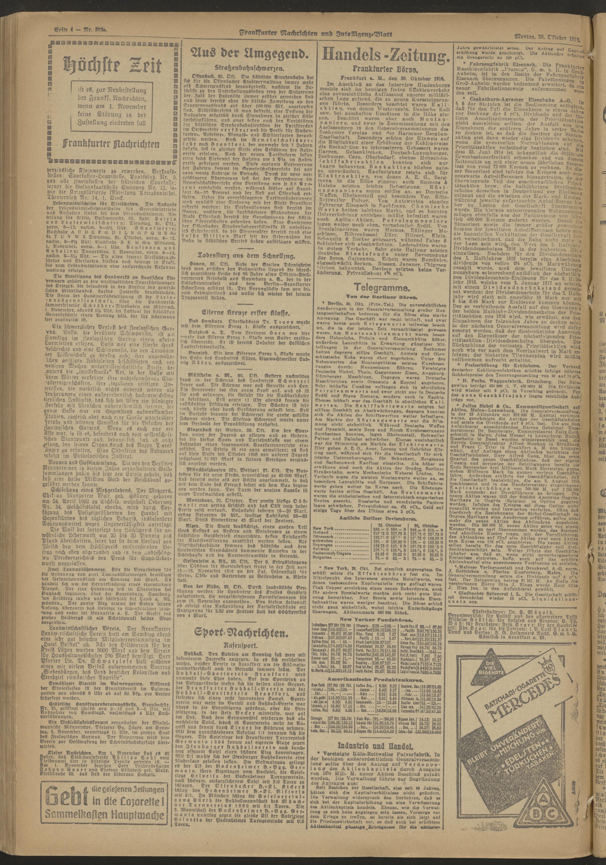30.10.1916 Abend-Ausgabe = Nr. 302 a