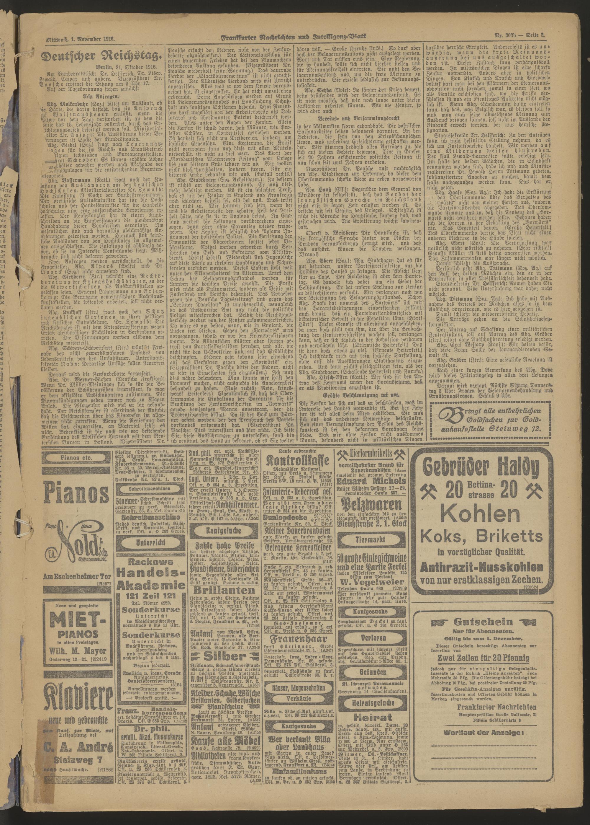 01.11.1916 = Nr. 303 b Morgen-Ausgabe