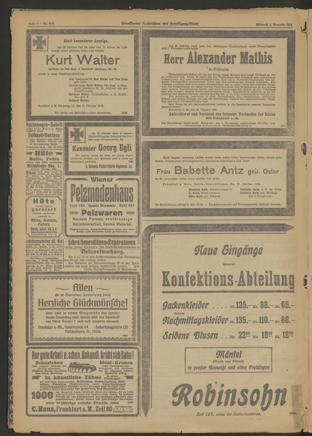 01.11.1916 = Nr. 303 b Morgen-Ausgabe