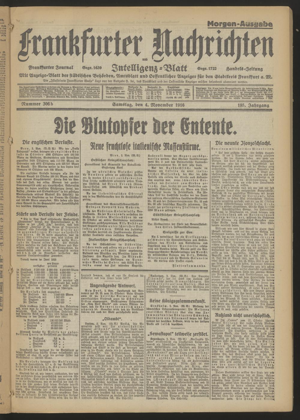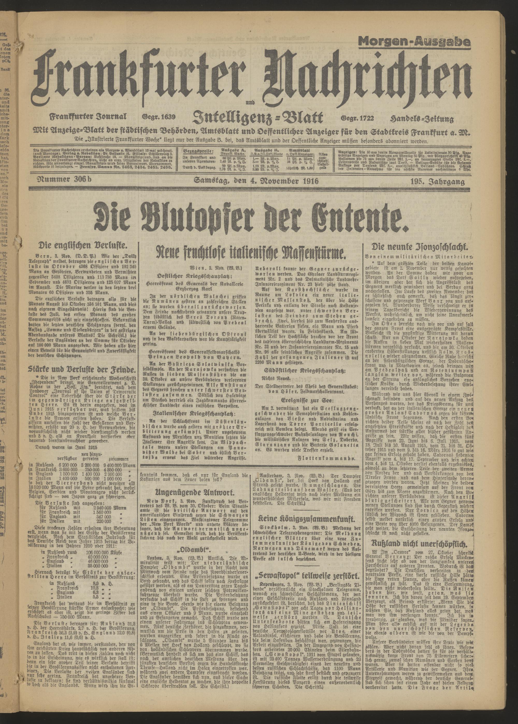 04.11.1916 = Nr. 306 b Morgen-Ausgabe