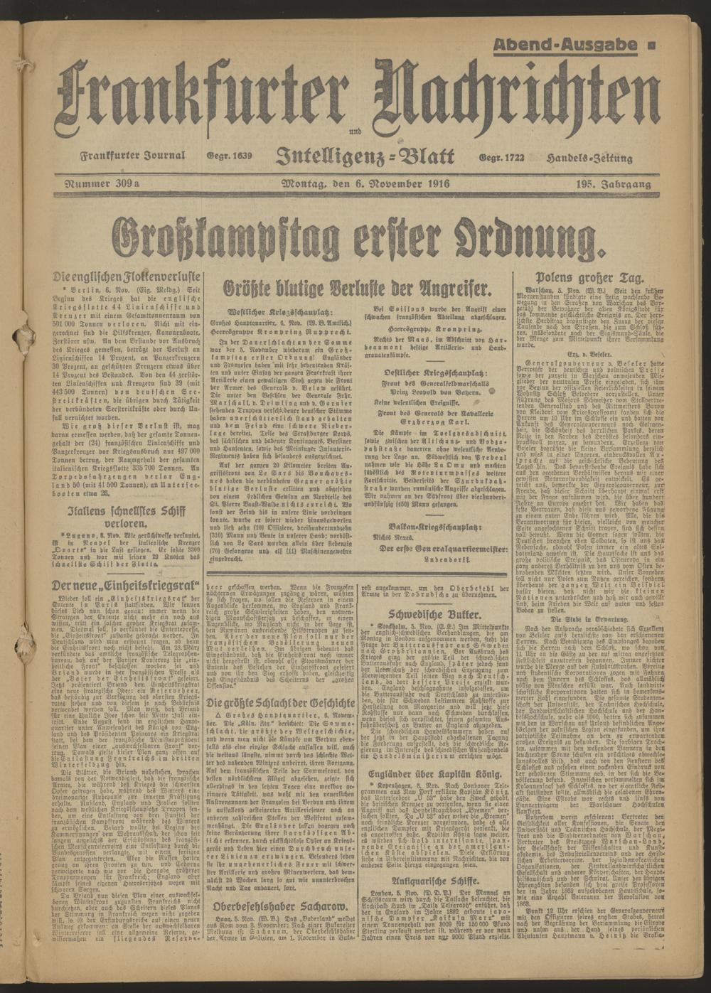 06.11.1916 = Nr. 309 a Abend-Ausgabe