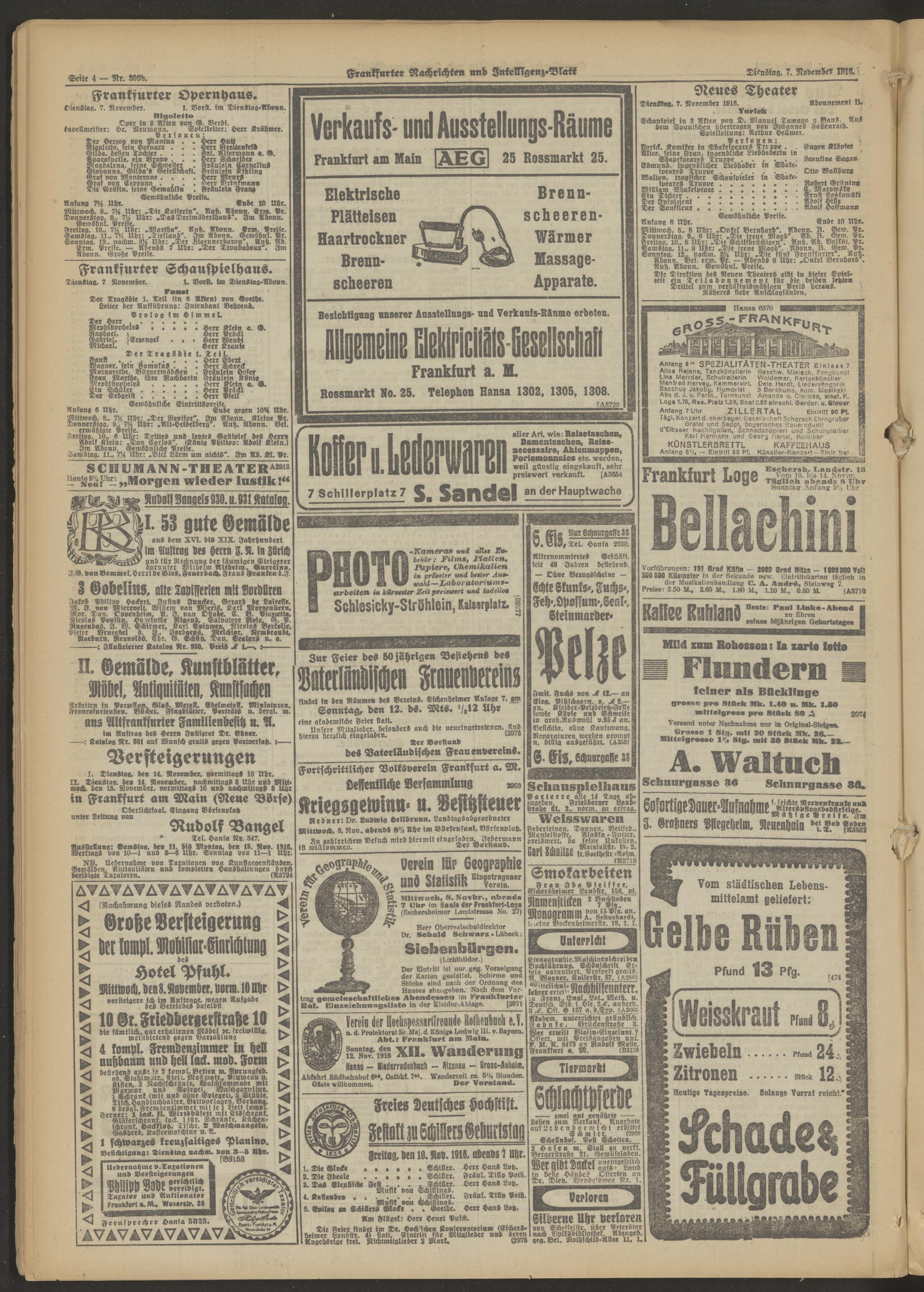 07.11.1916 = Nr. 309 b Morgen-Ausgabe