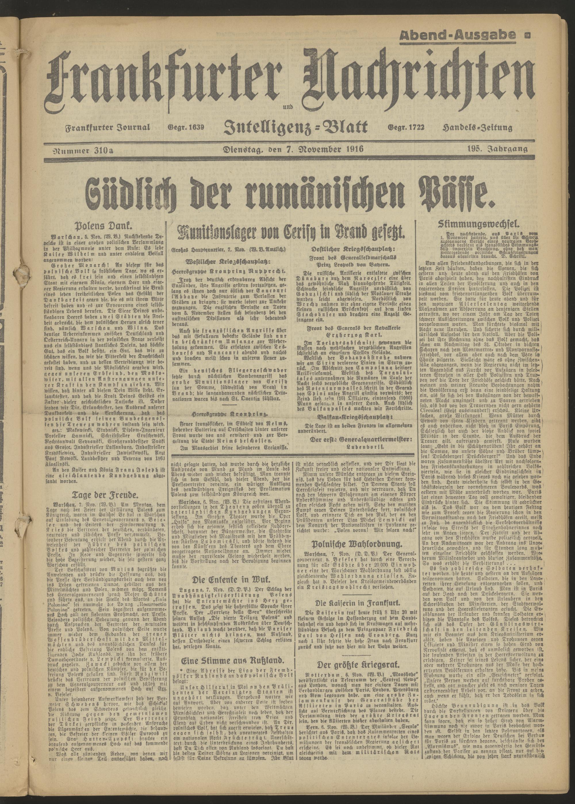 07.11.1916 = Nr. 310 a Abend-Ausgabe