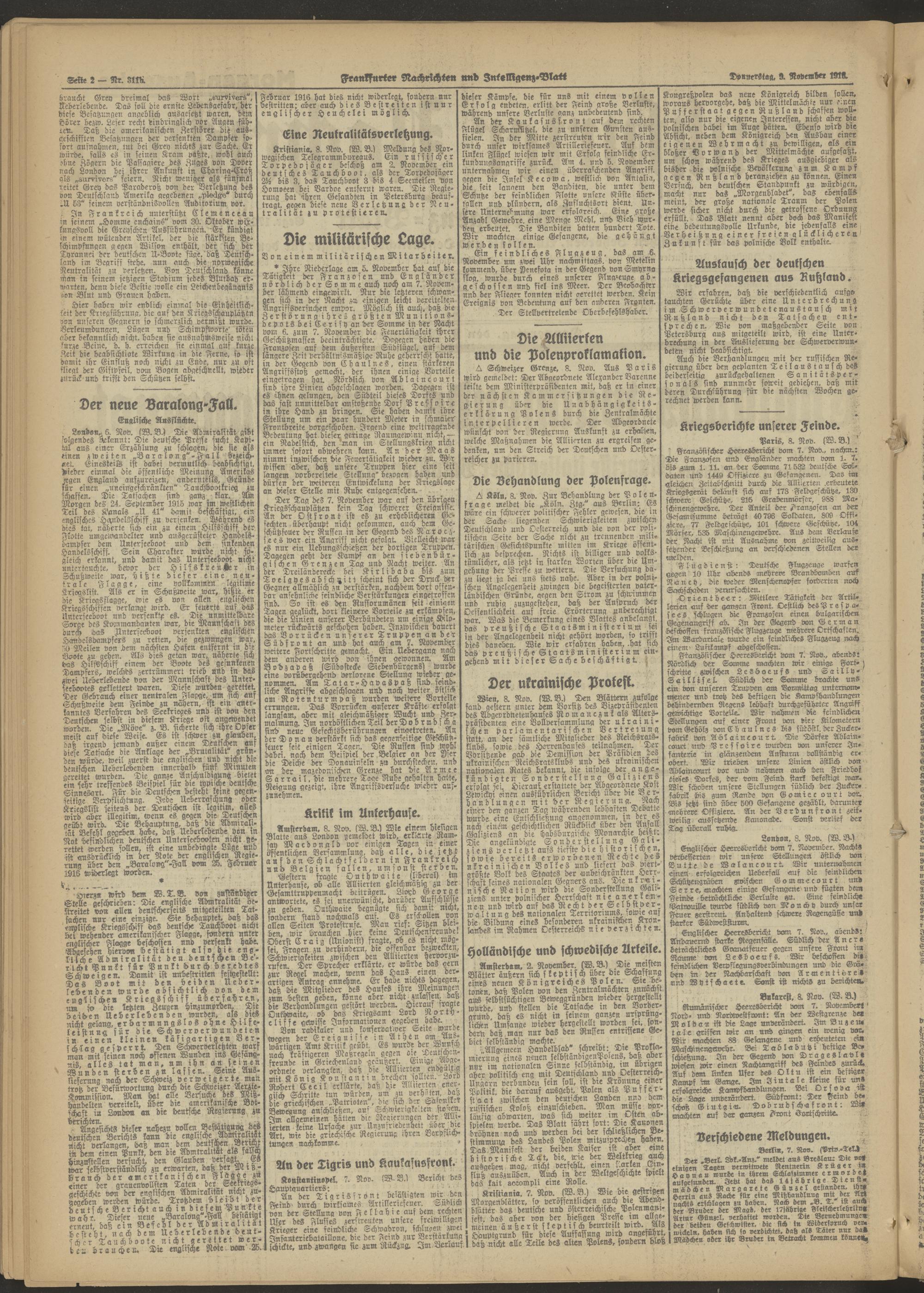 09.11.1916 = Nr. 311 b Morgen-Ausgabe