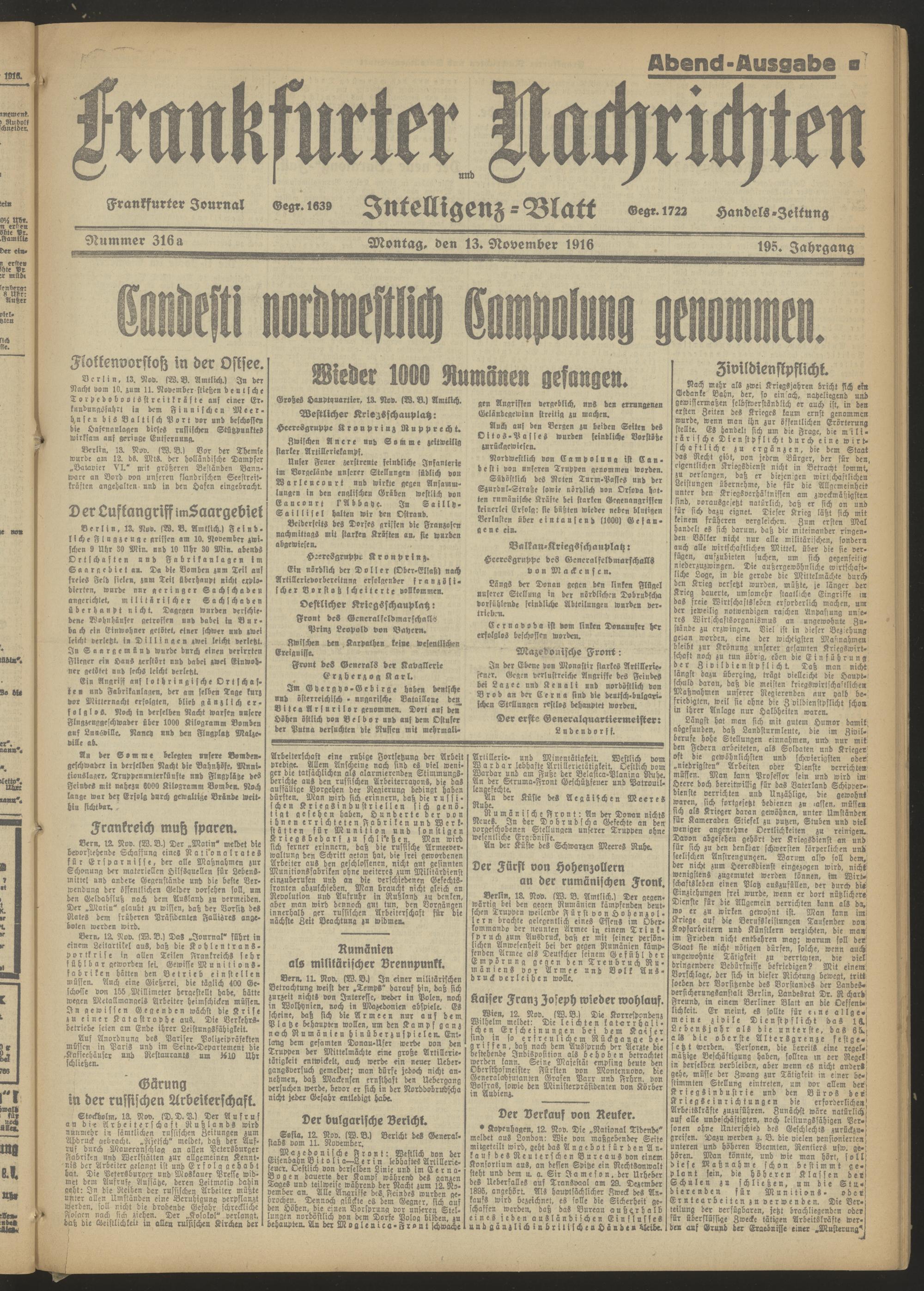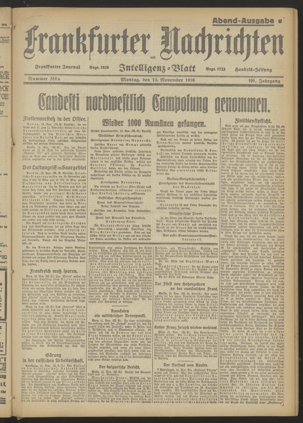 13.11.1916 = Nr. 316 a Abend-Ausgabe