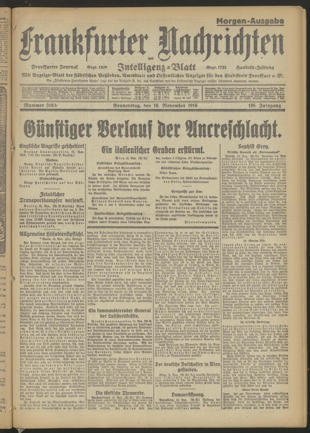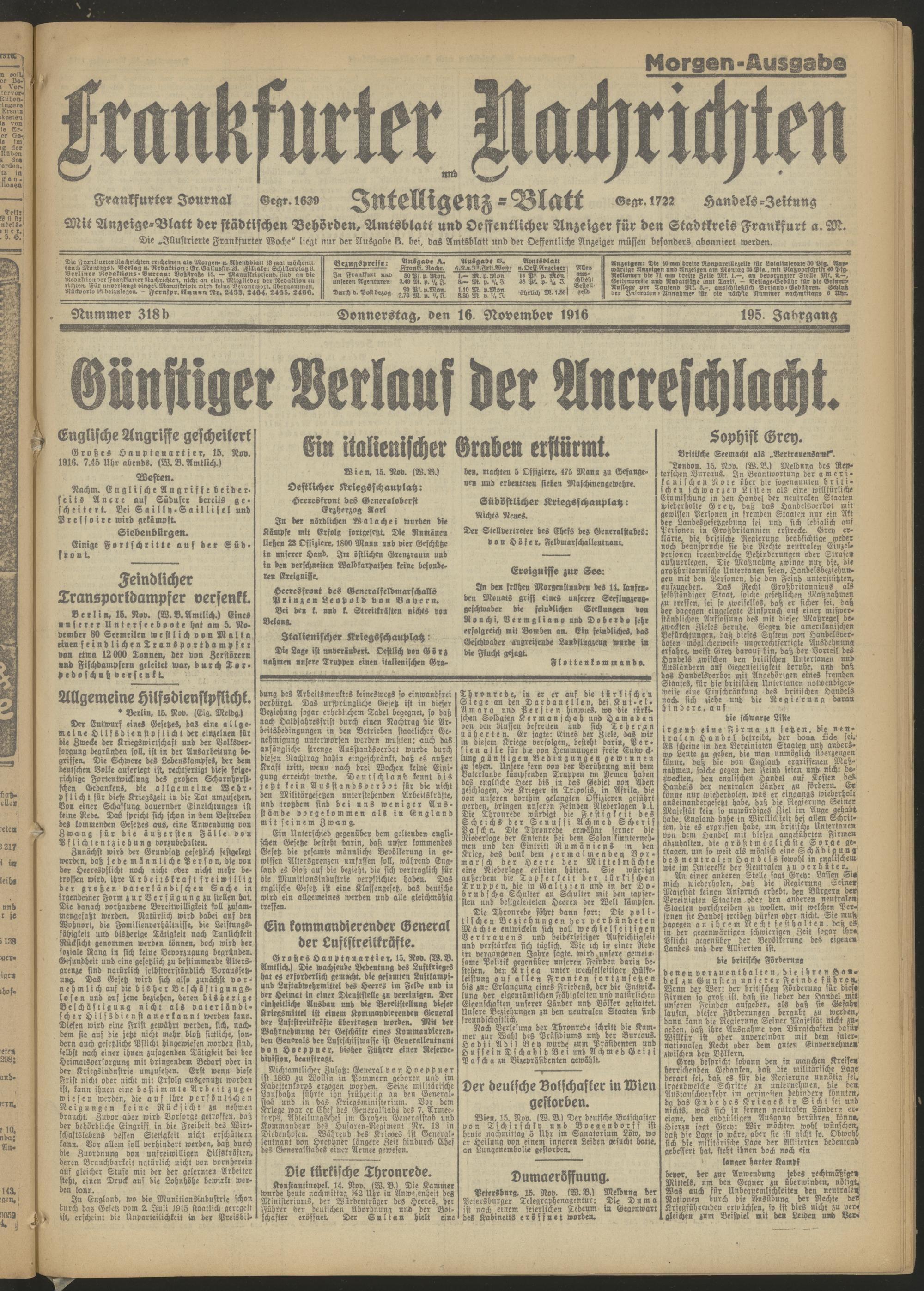 16.11.1916 = Nr. 318 b Morgen-Ausgabe