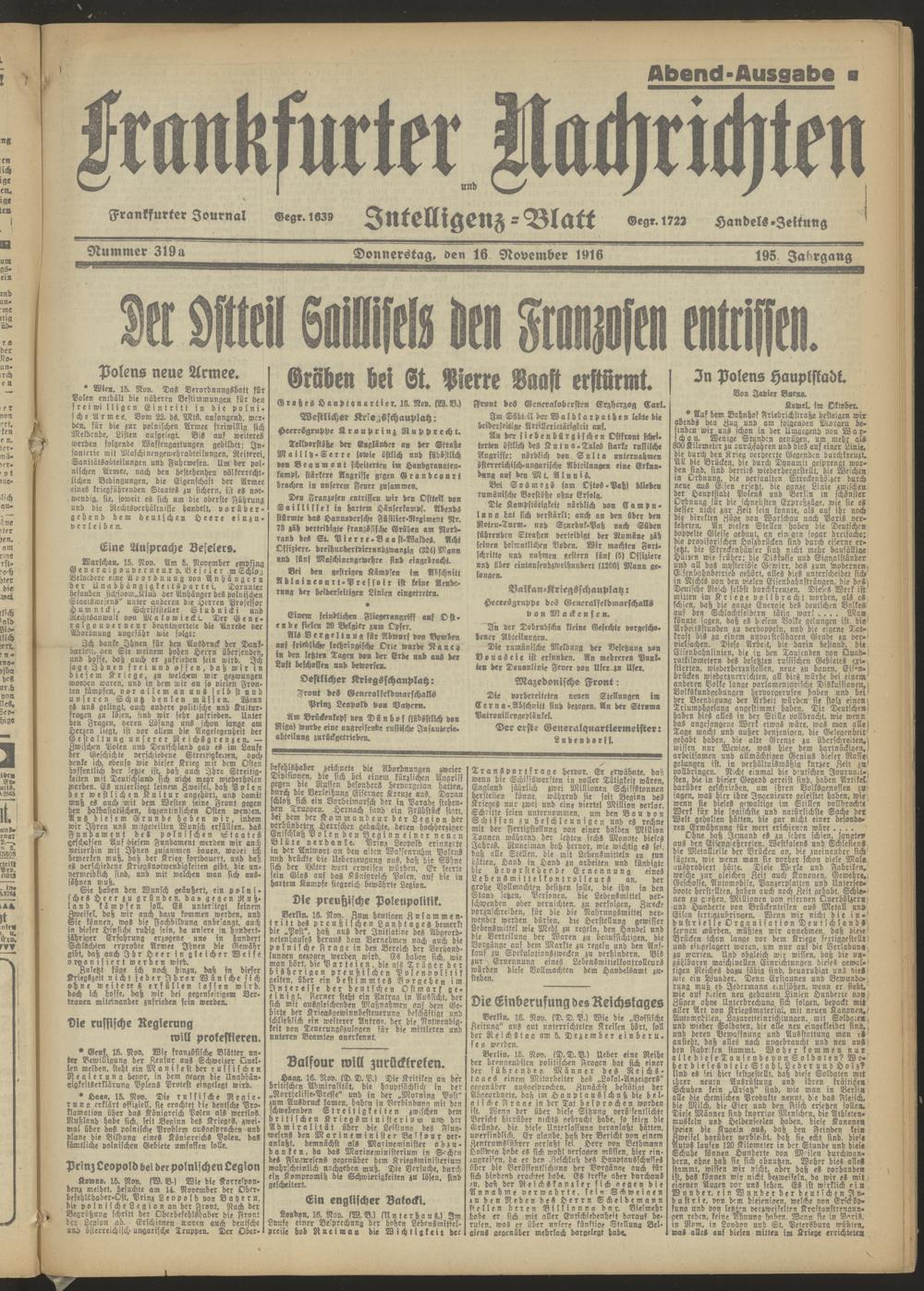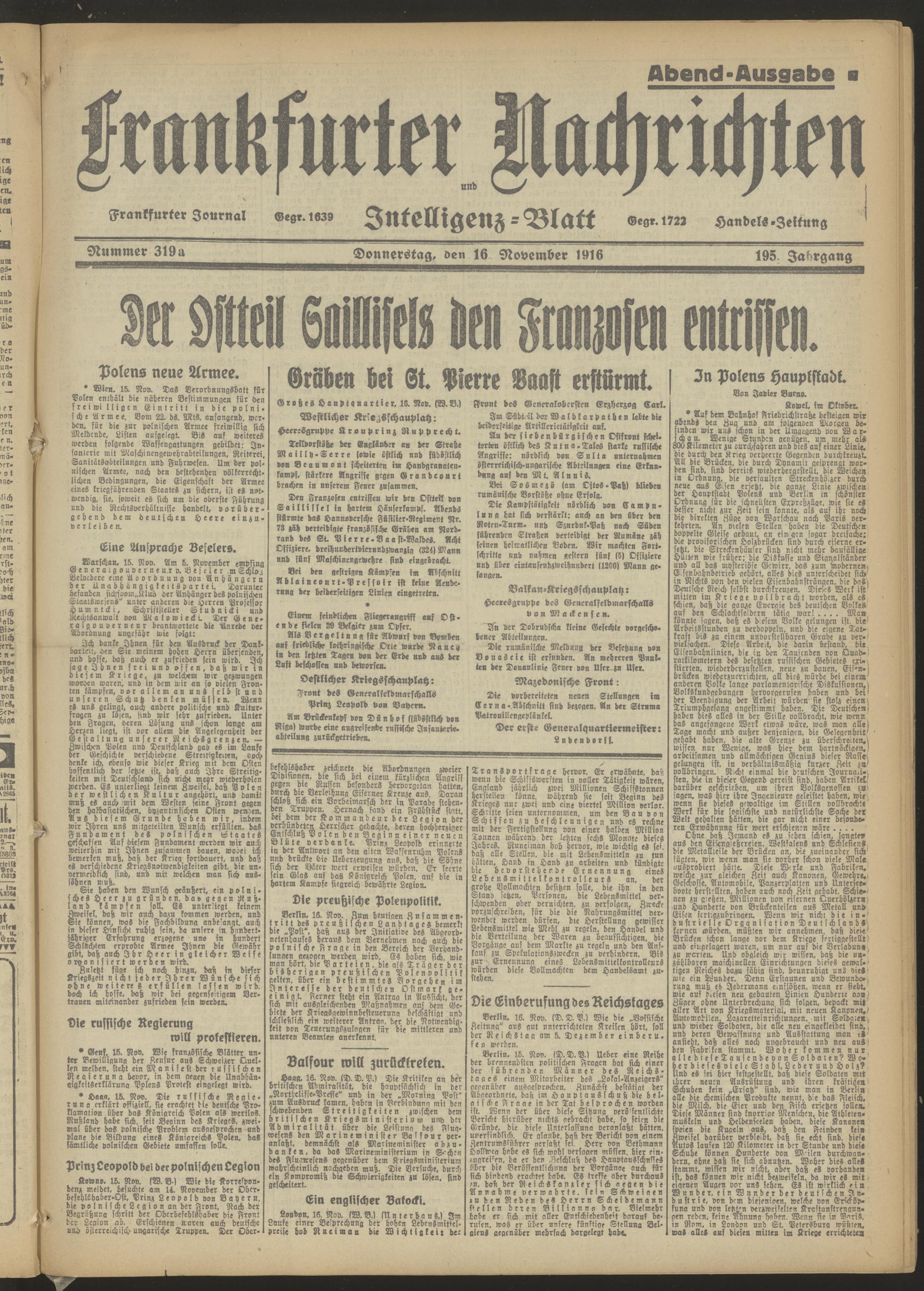 16.11.1916 = Nr. 319 a Abend-Ausgabe