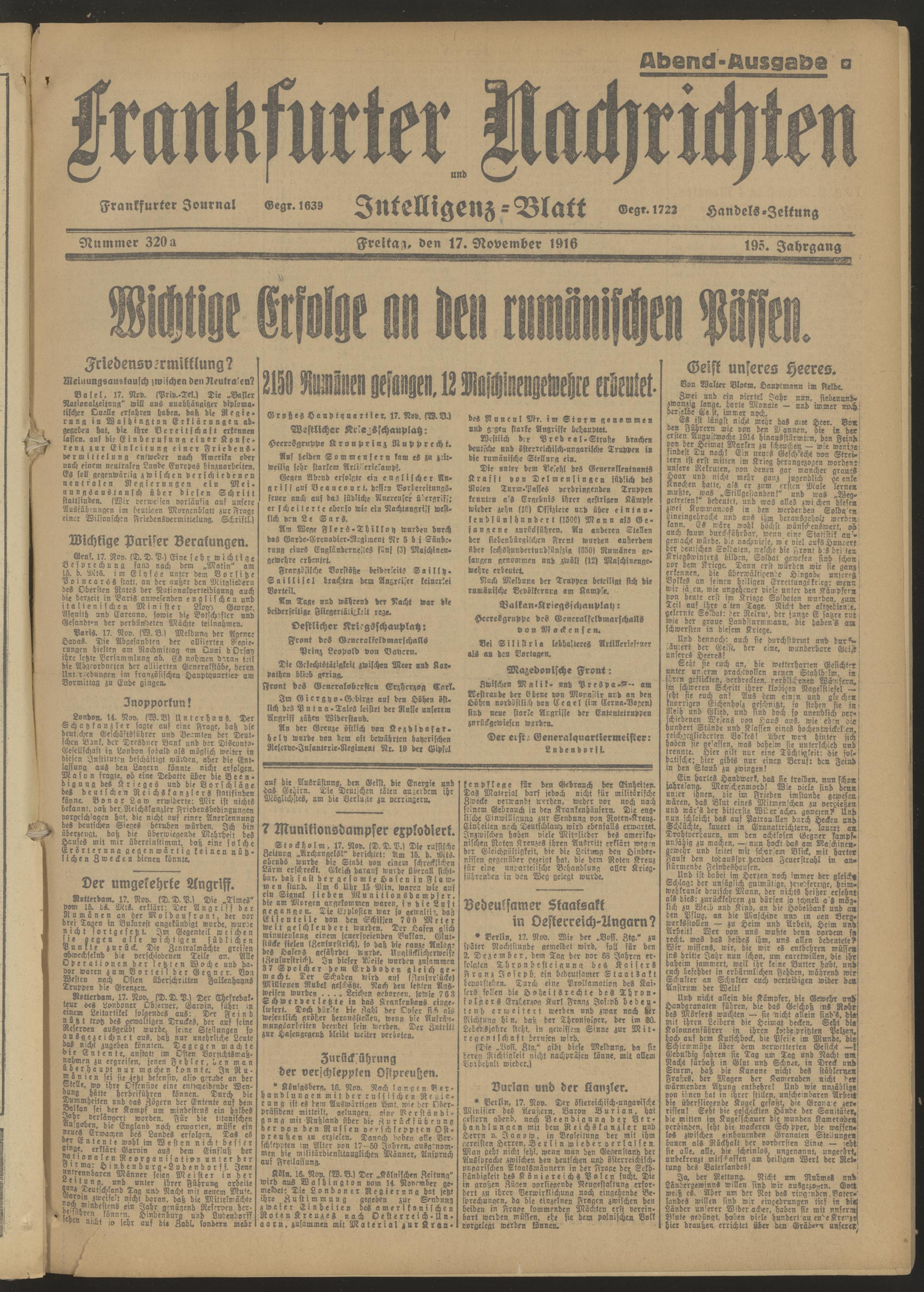 17.11.1916 = Nr. 320 a Abend-Ausgabe