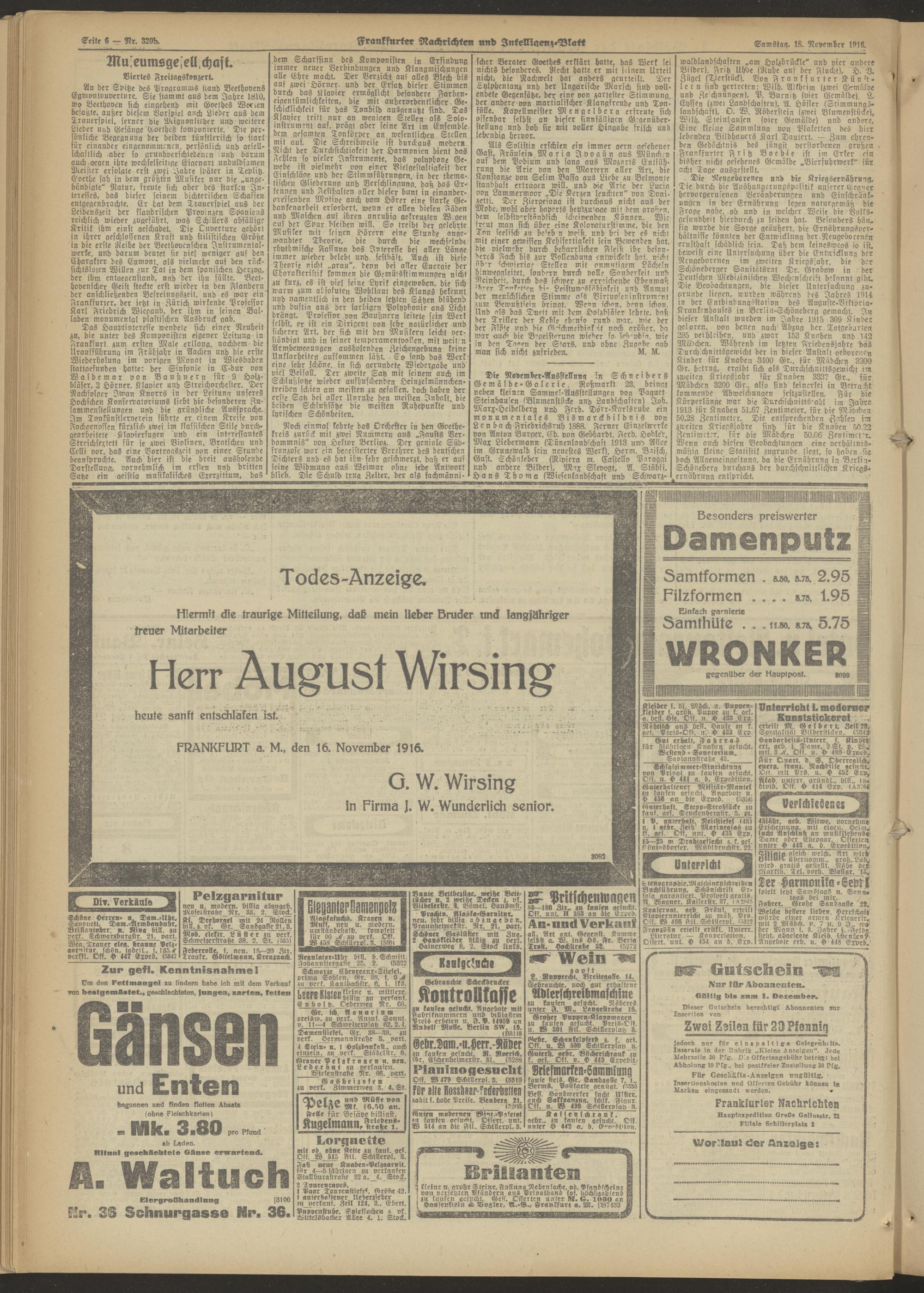 18.11.1916 = Nr. 320 b Morgen-Ausgabe