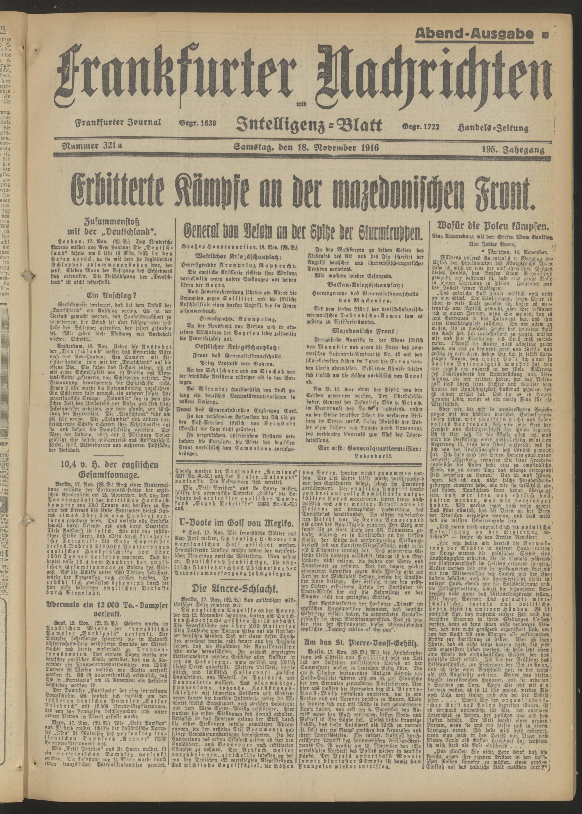 18.11.1916 = Nr. 321 a Abend-Ausgabe