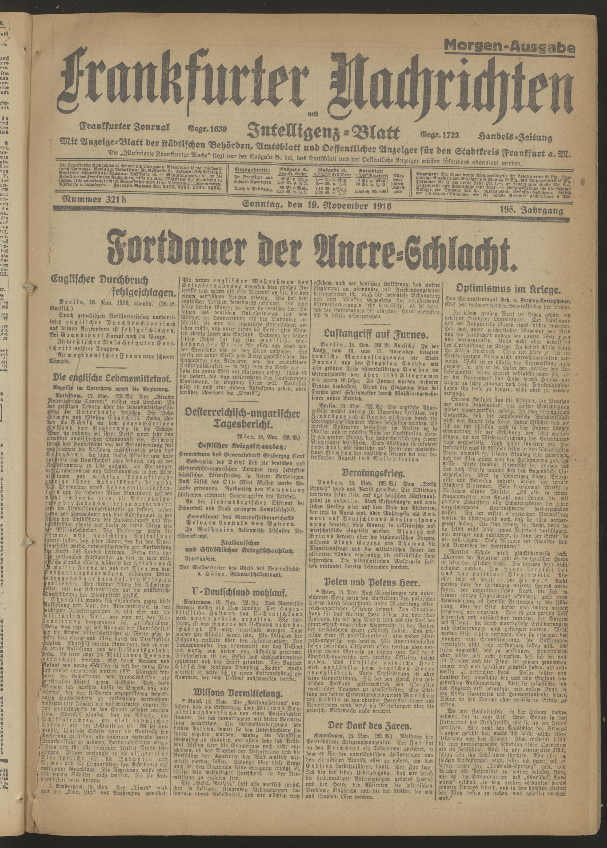 19.11.1916 = Nr. 321 b Morgen-Ausgabe