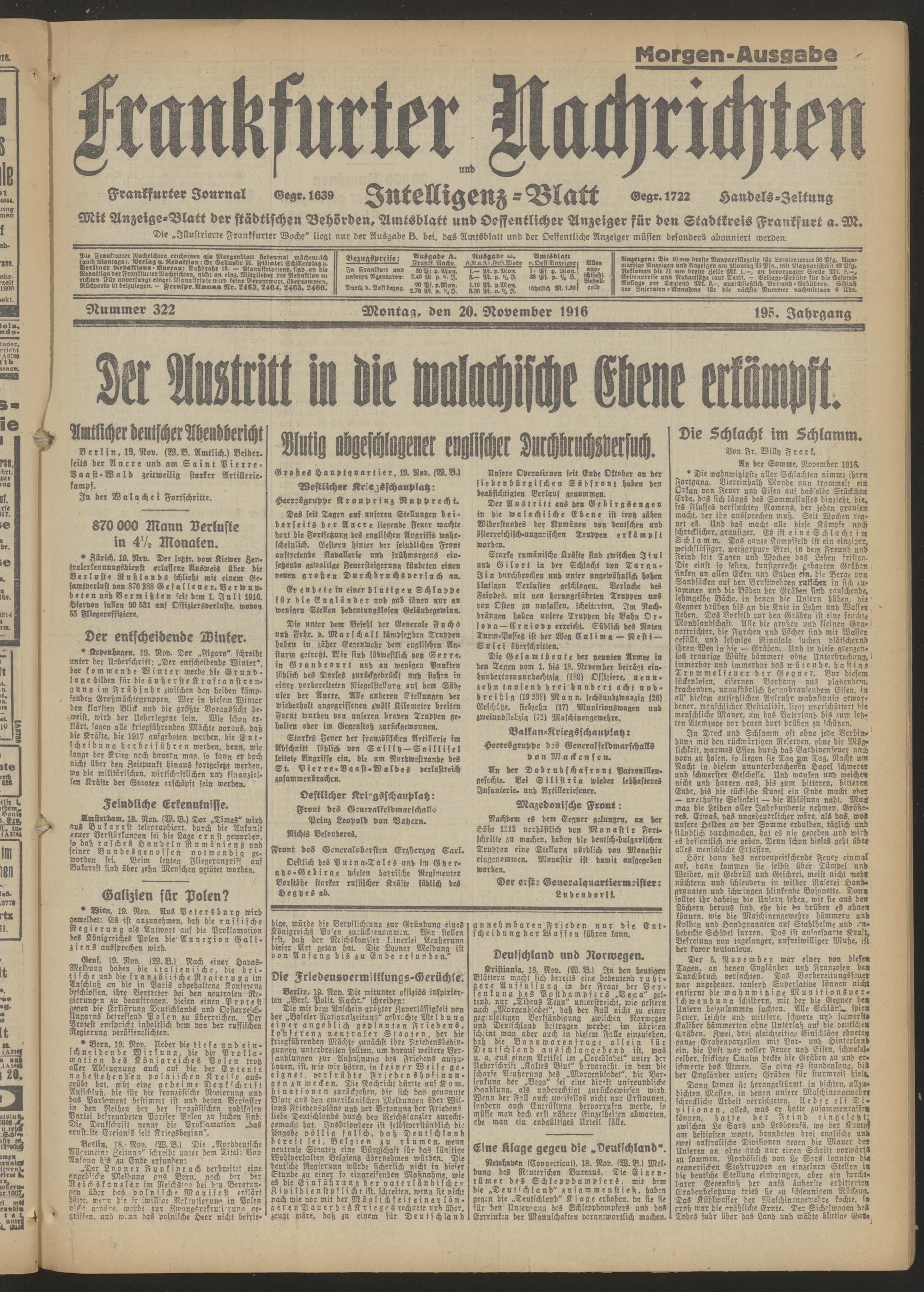 20.11.1916 = Nr. 322 b Morgen-Ausgabe