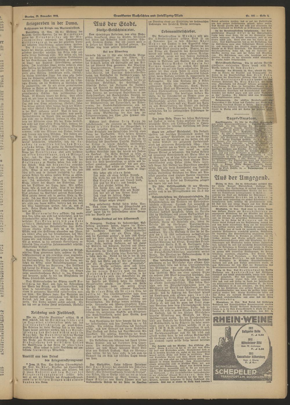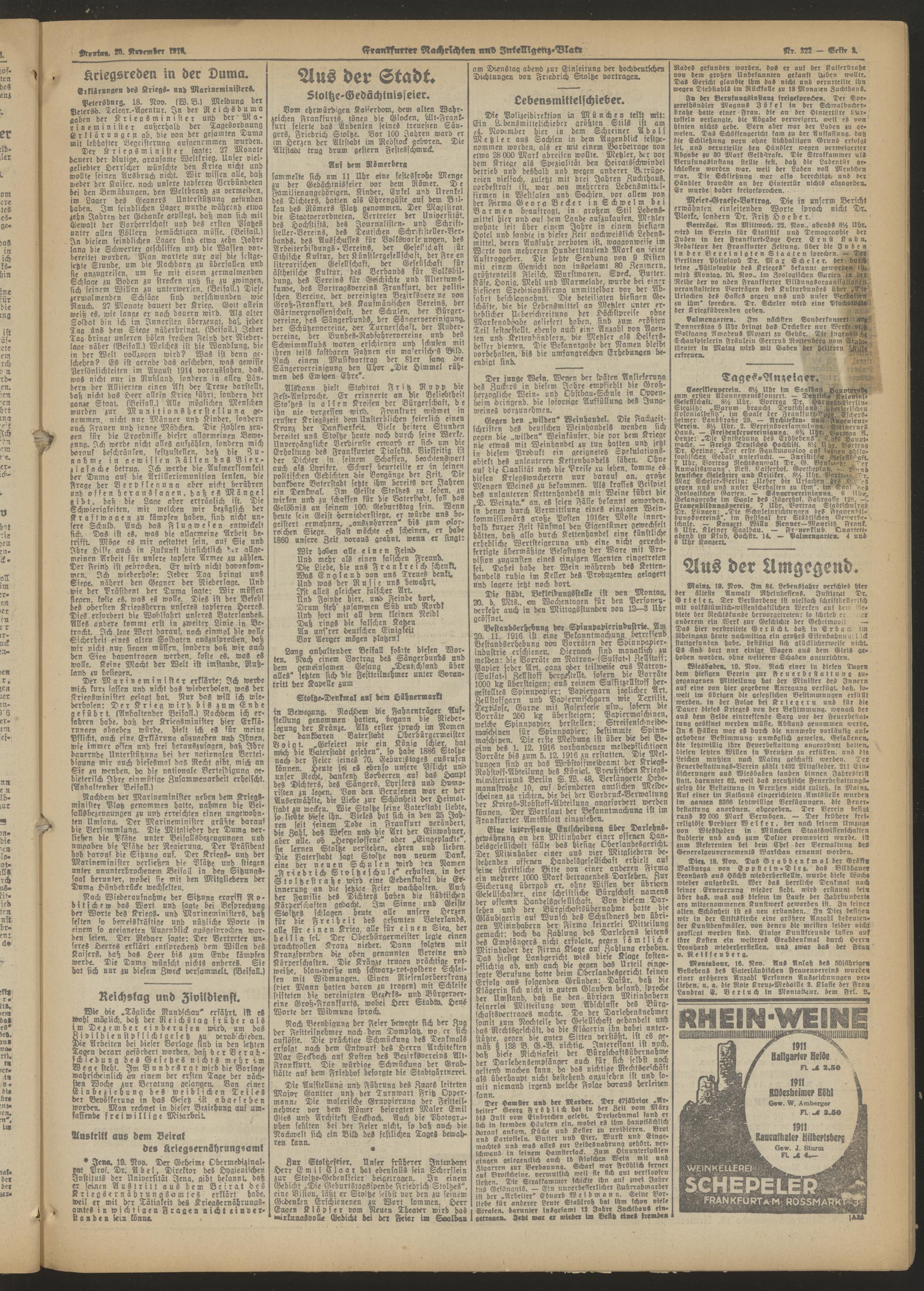 20.11.1916 = Nr. 322 b Morgen-Ausgabe