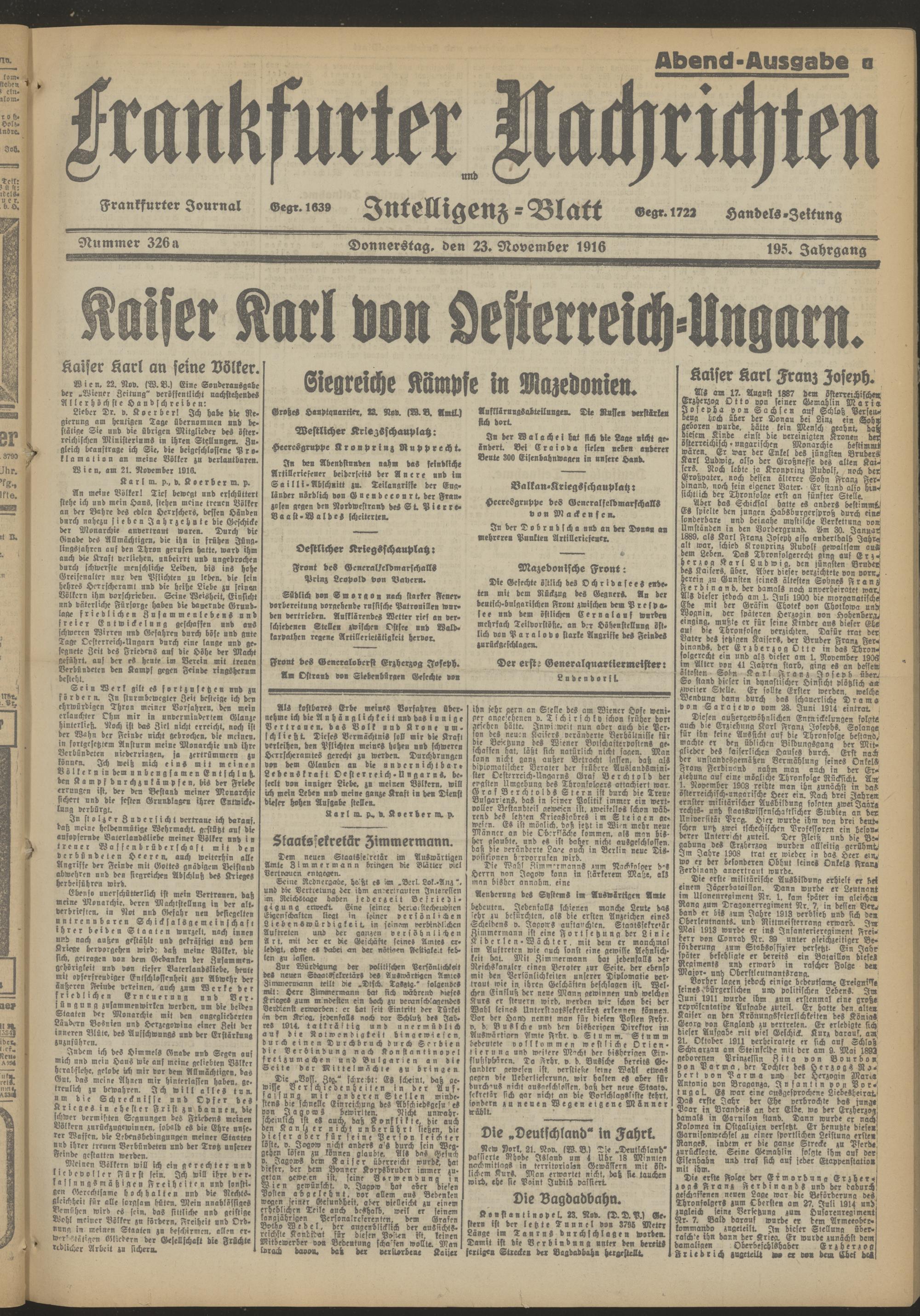 23.11.1916 = Nr. 326 a Abend-Ausgabe