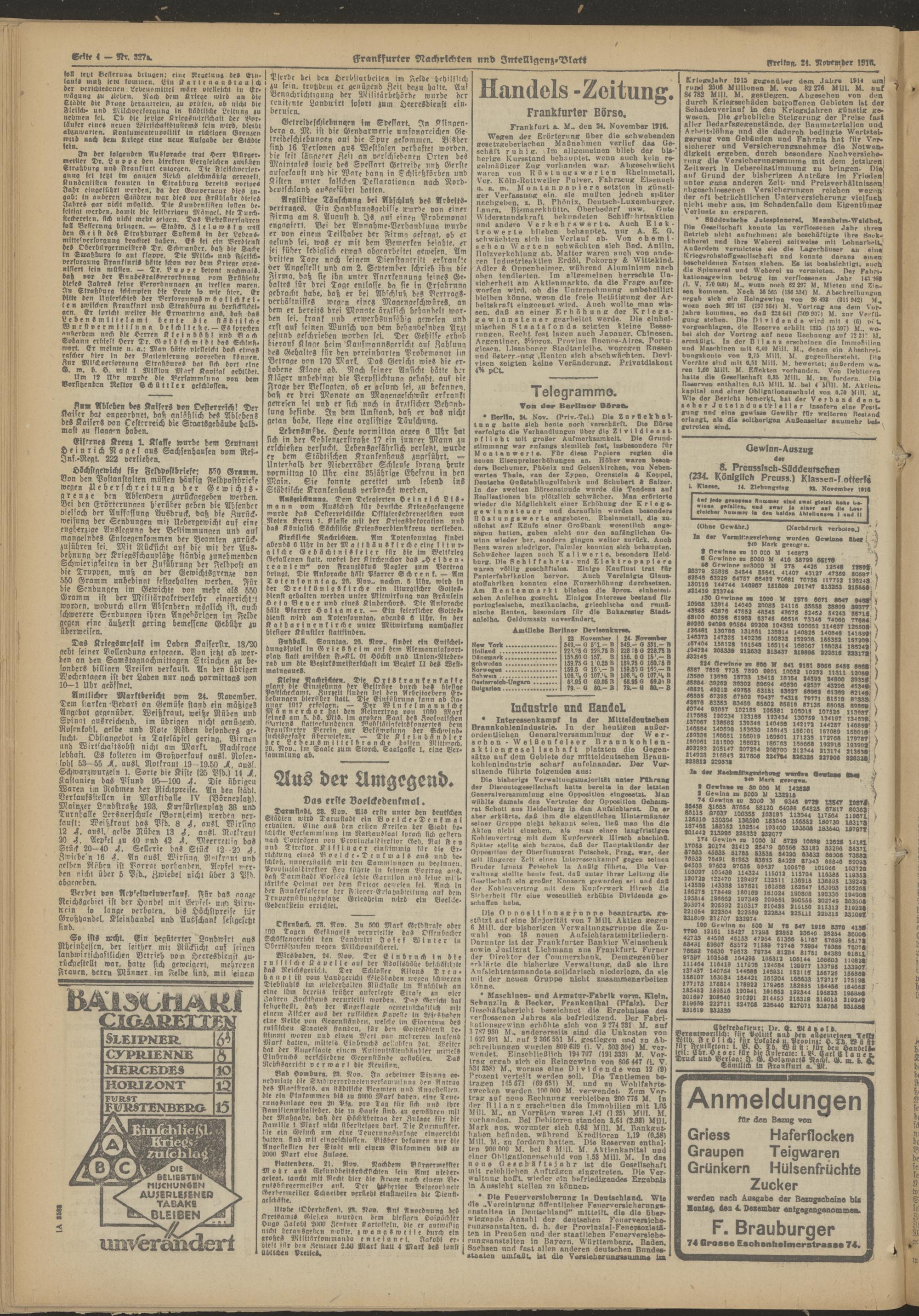 24.11.1916 = Nr. 327 a Abend-Ausgabe