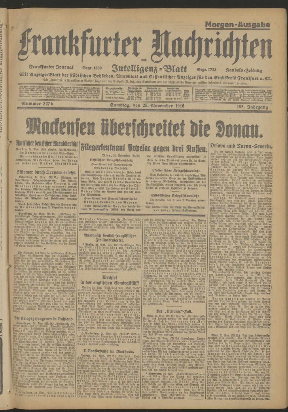 25.11.1916 = Nr. 327 b Morgen-Ausgabe