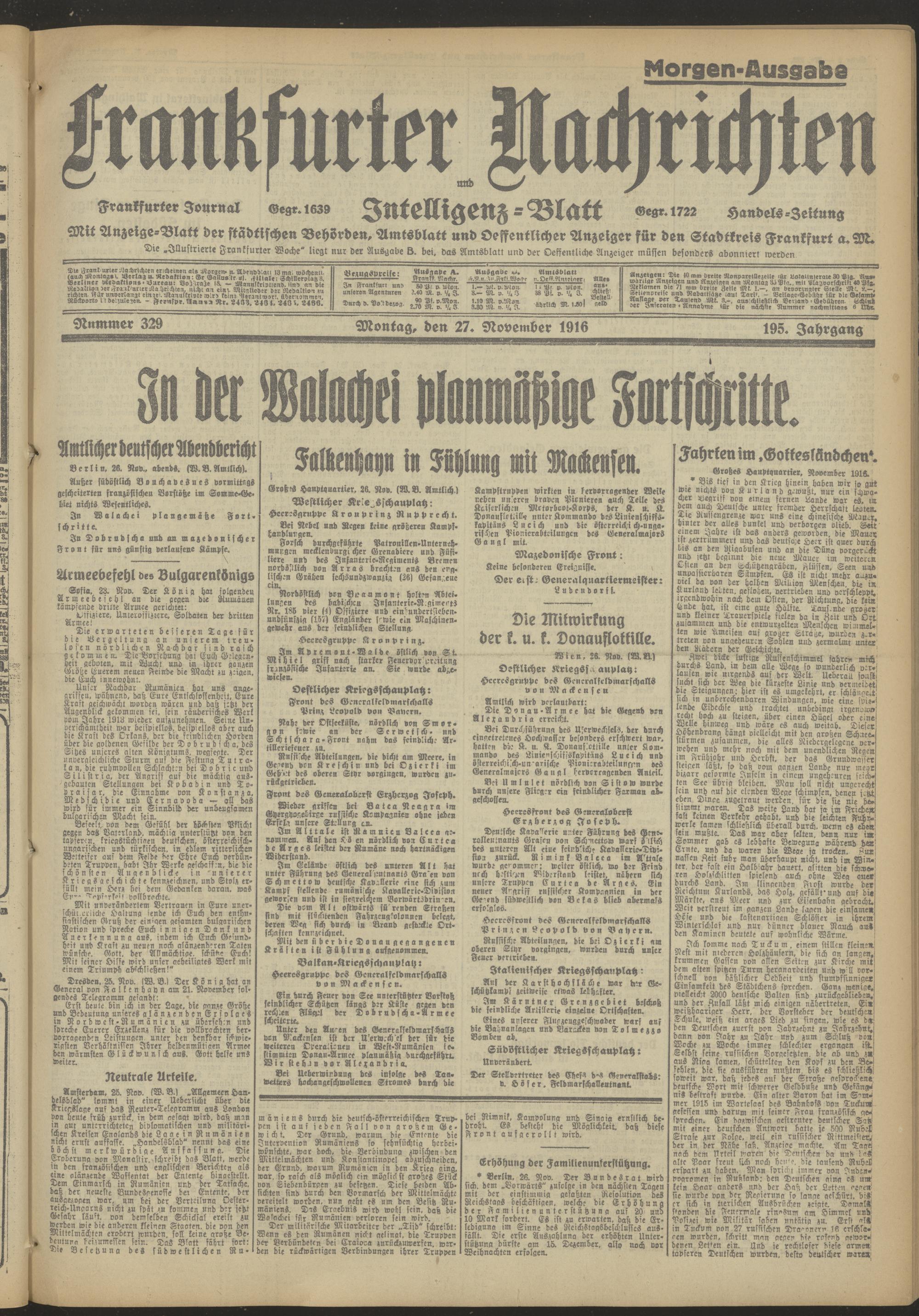 27.11.1916 = Nr. 329 b Morgen-Ausgabe