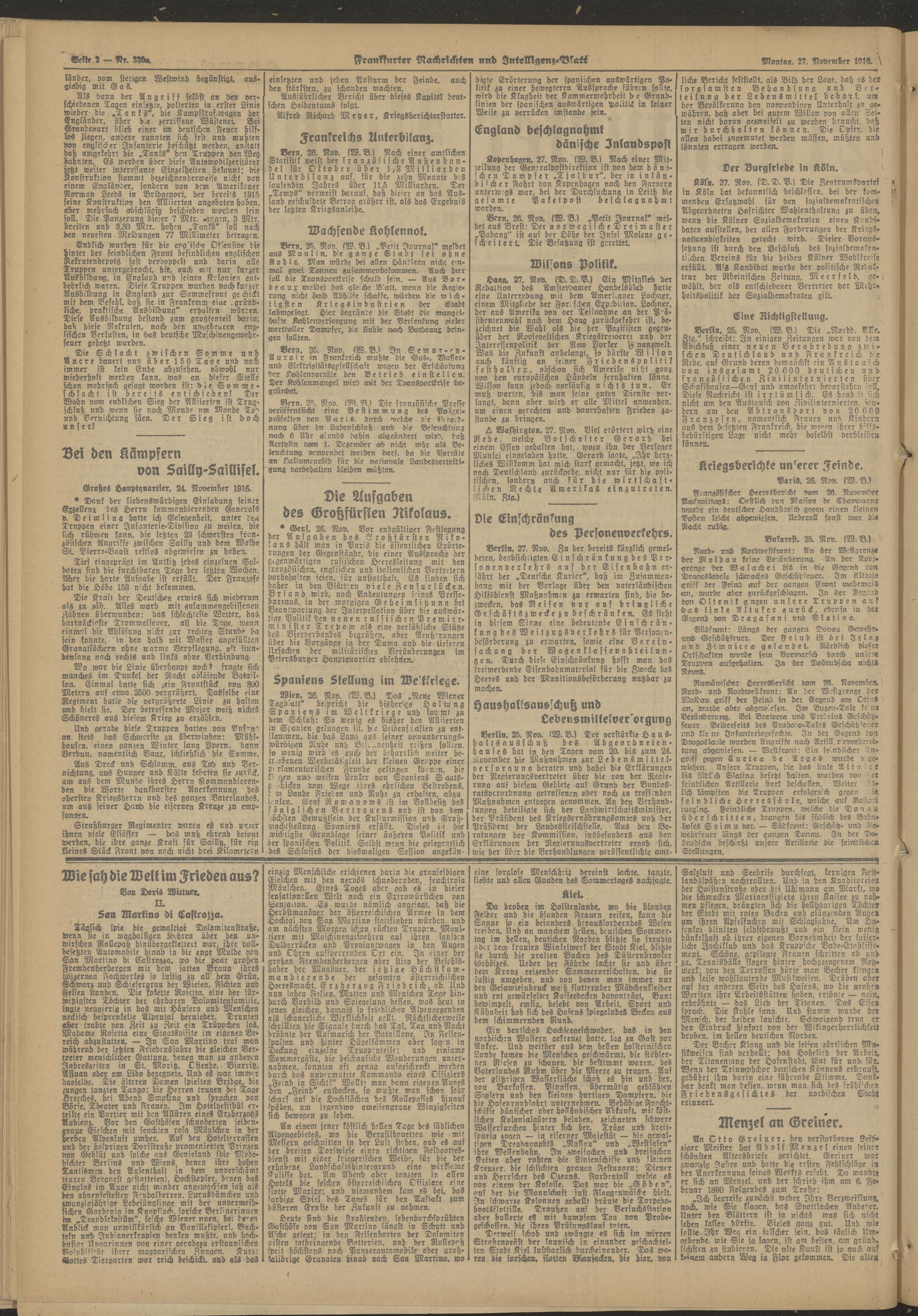 27.11.1916 = Nr. 330 a Abend-Ausgabe