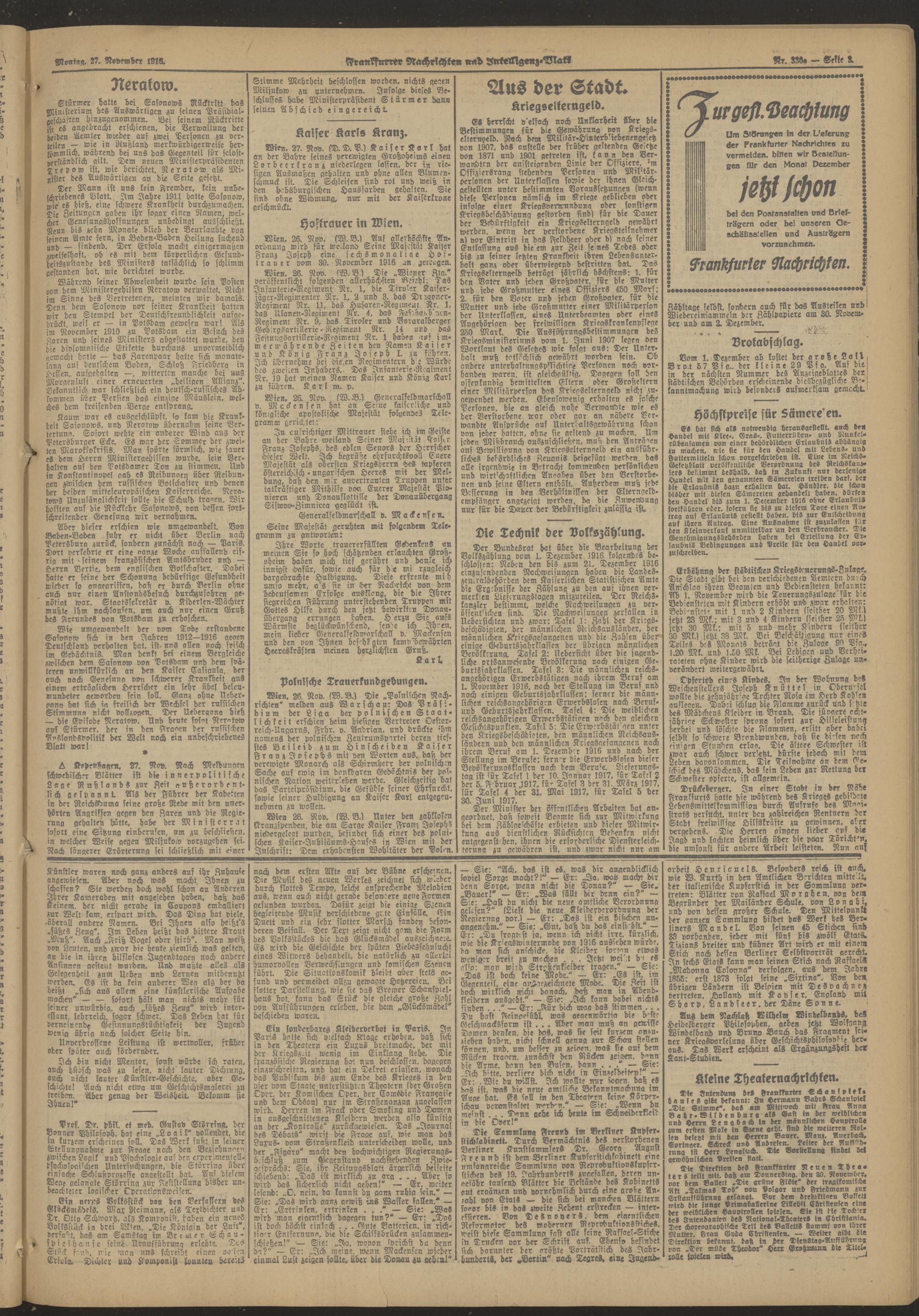 27.11.1916 = Nr. 330 a Abend-Ausgabe