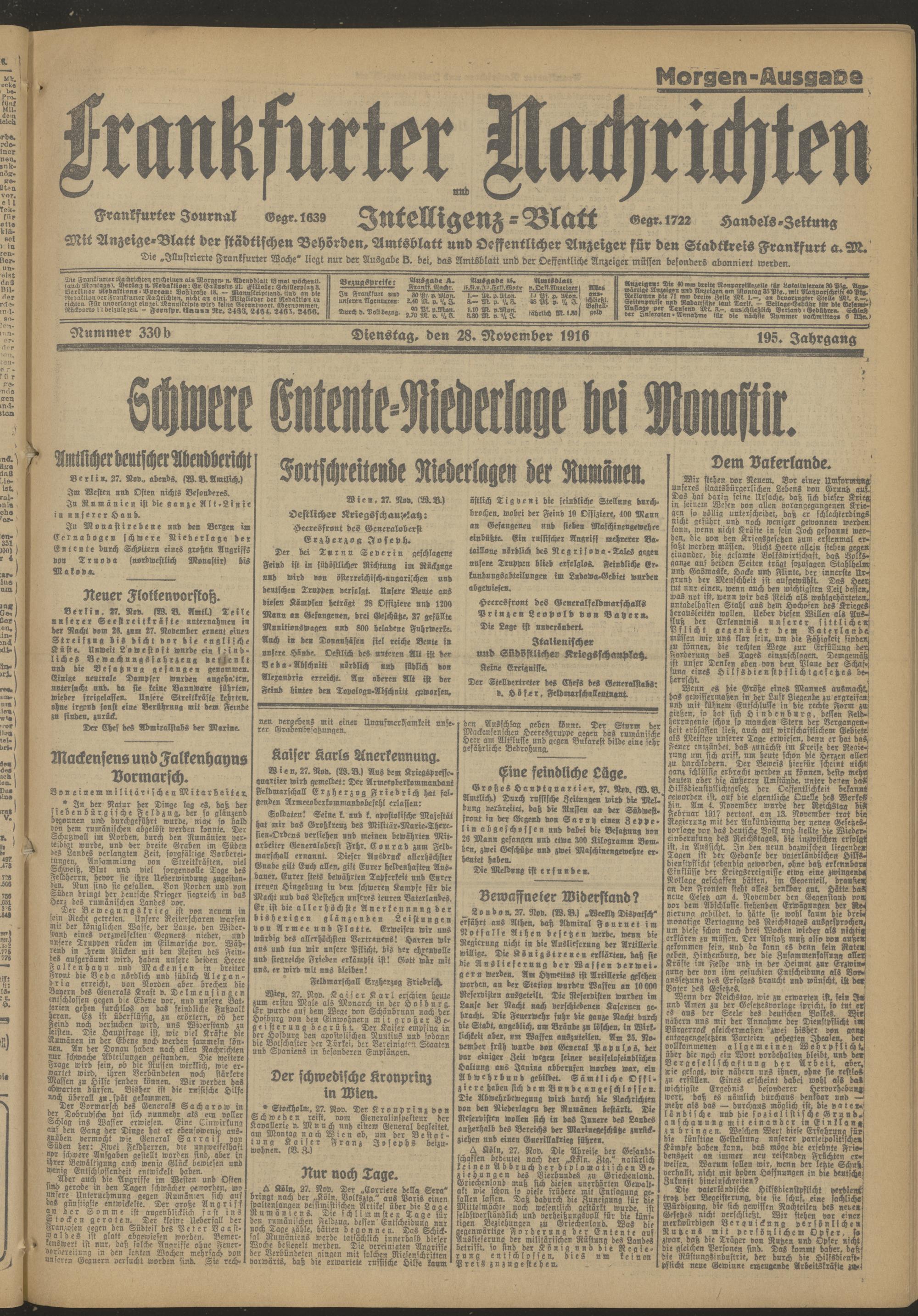 28.11.1916 = Nr. 330 b Morgen-Ausgabe