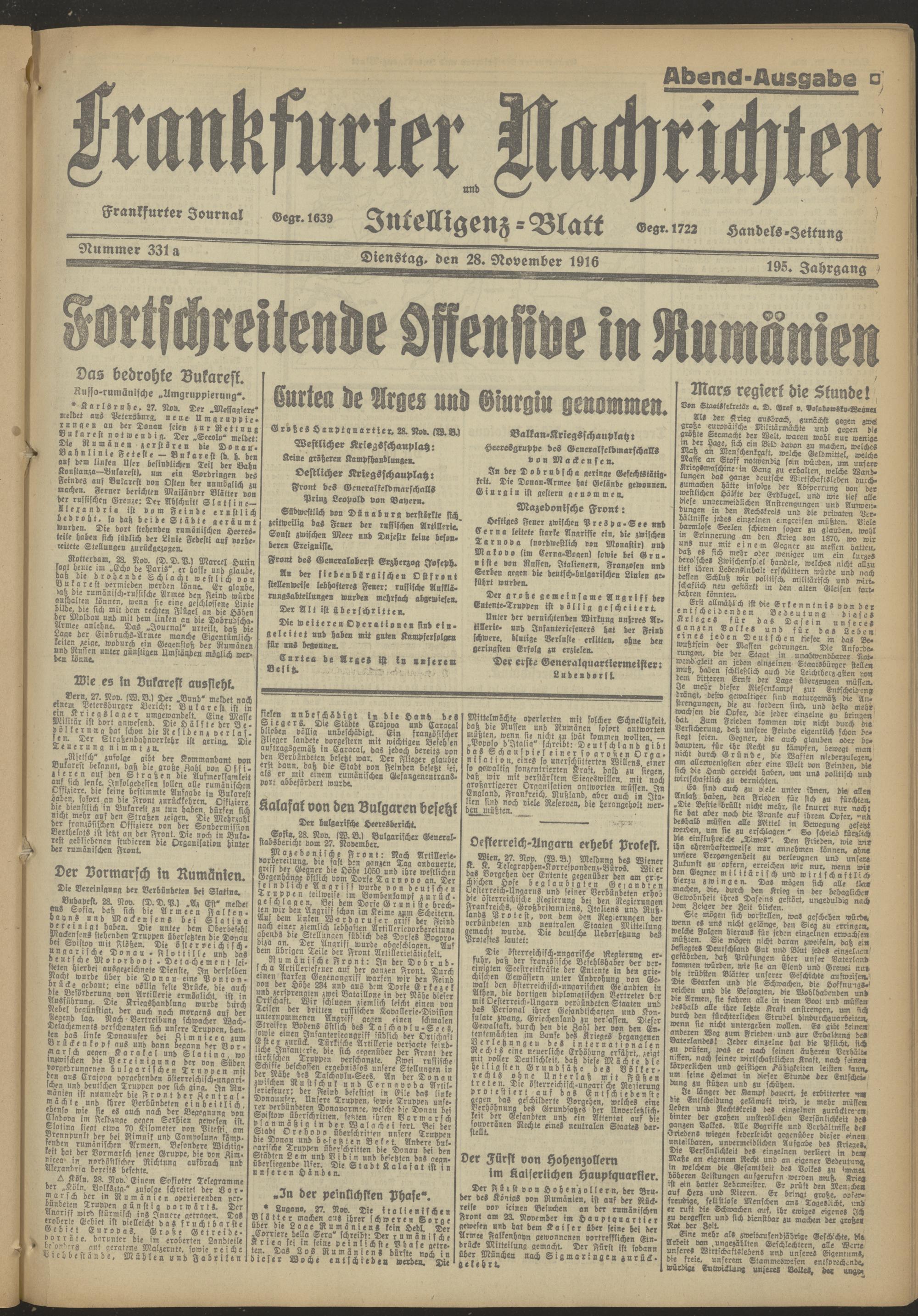 28.11.1916 = Nr. 331 a Abend-Ausgabe