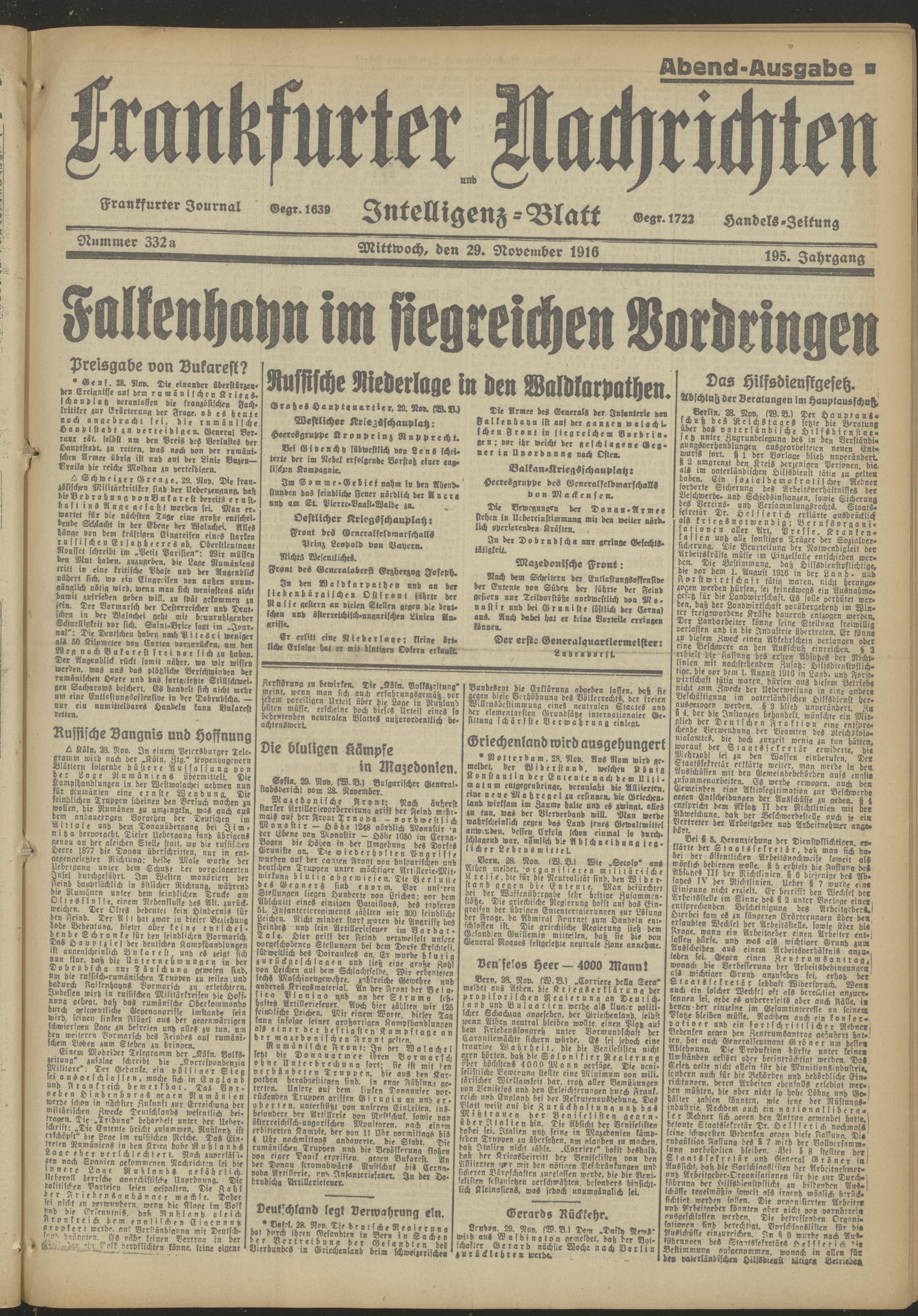 29.11.1916 = Nr. 332 a Abend-Ausgabe