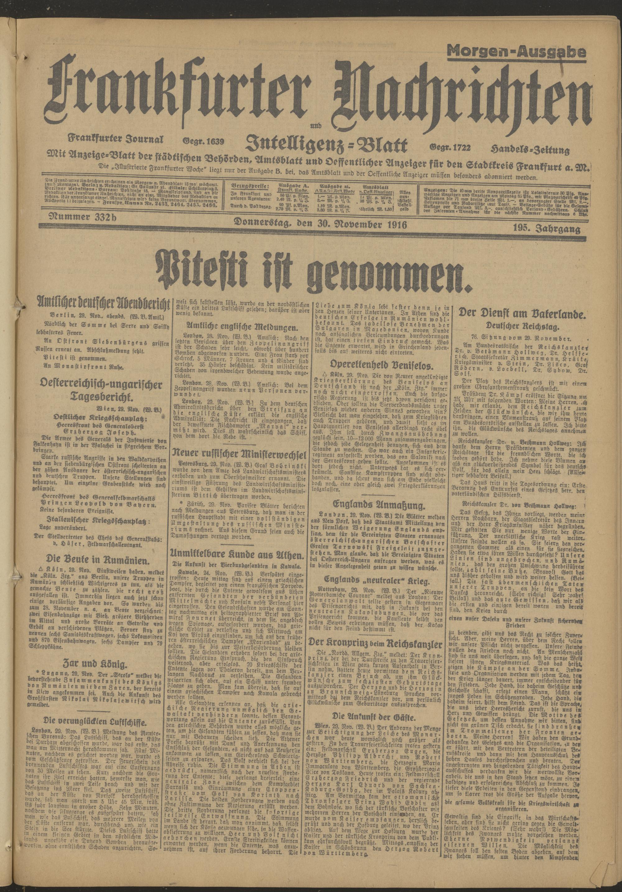 30.11.1916 = Nr. 332 b Morgen-Ausgabe