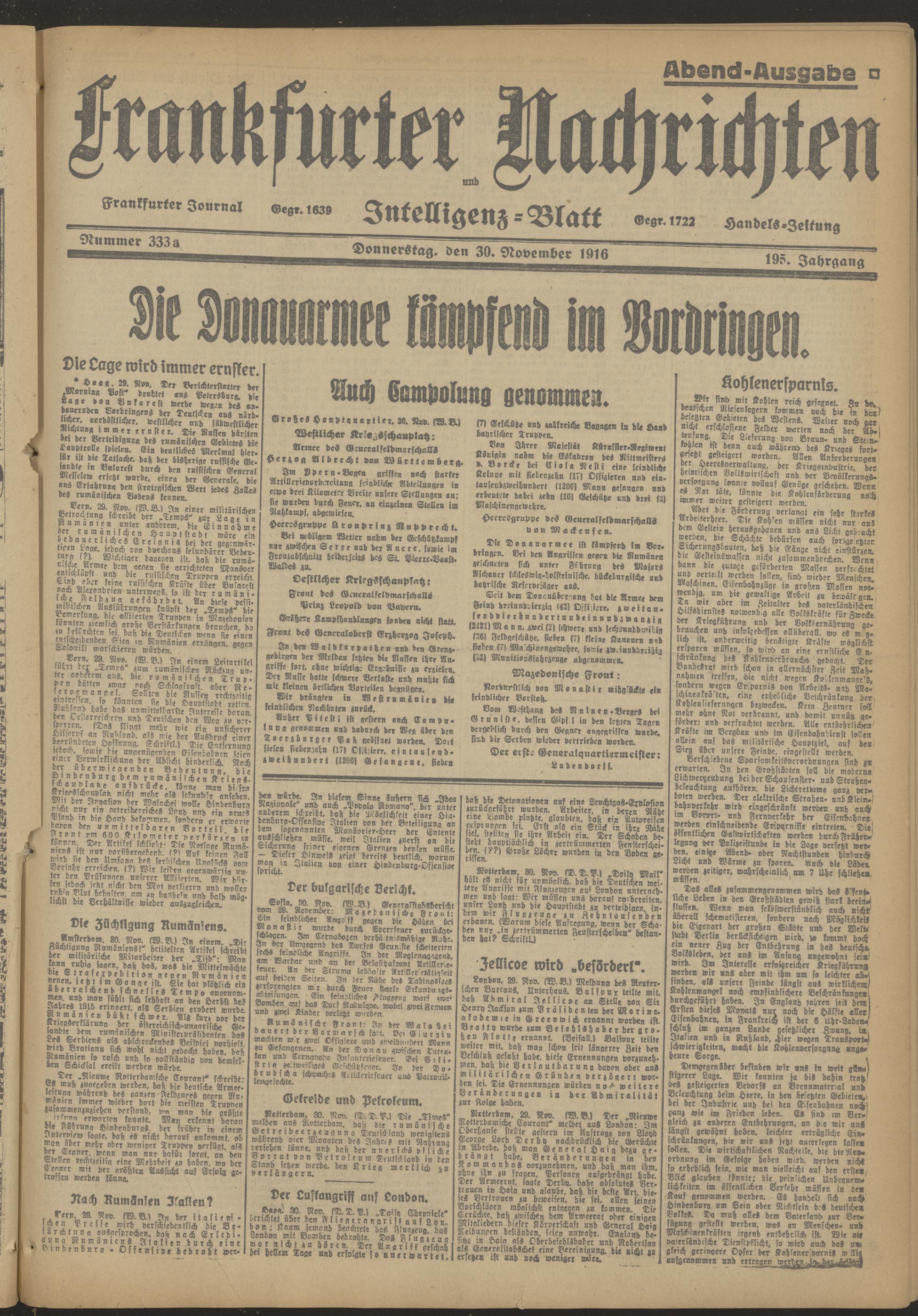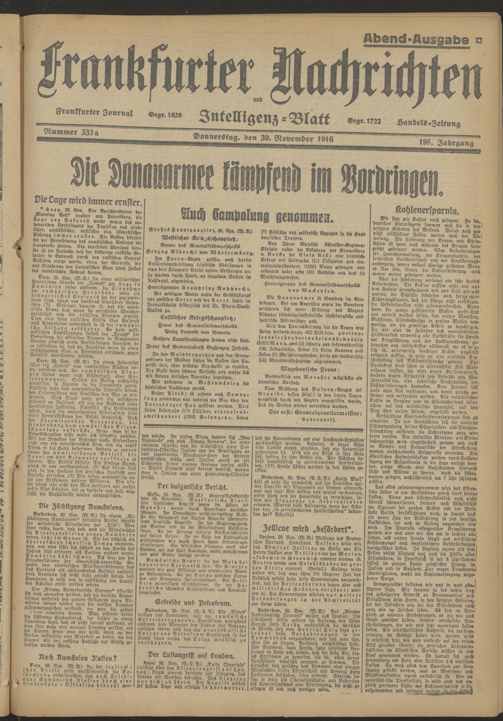 30.11.1916 = Nr. 333 a Abend-Ausgabe