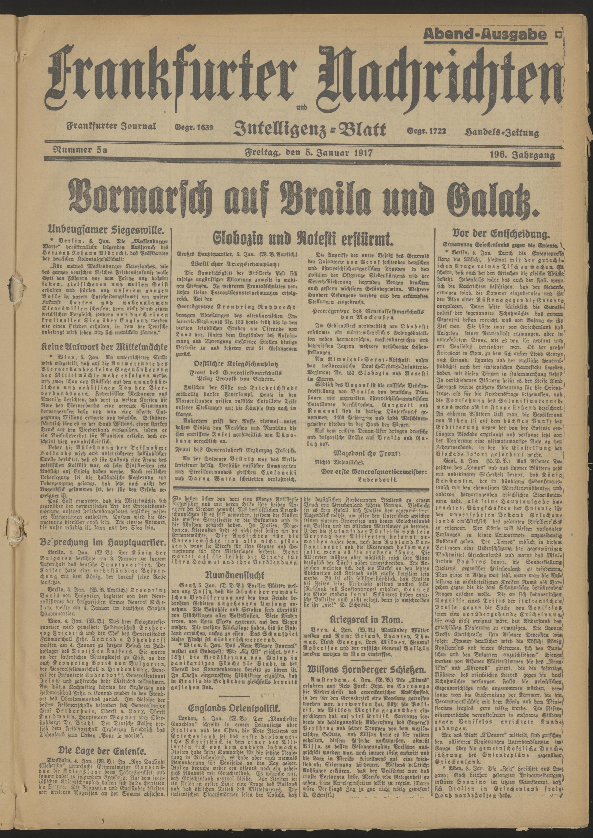 05.01.1917 Abend-Ausgabe = Nr. 5a