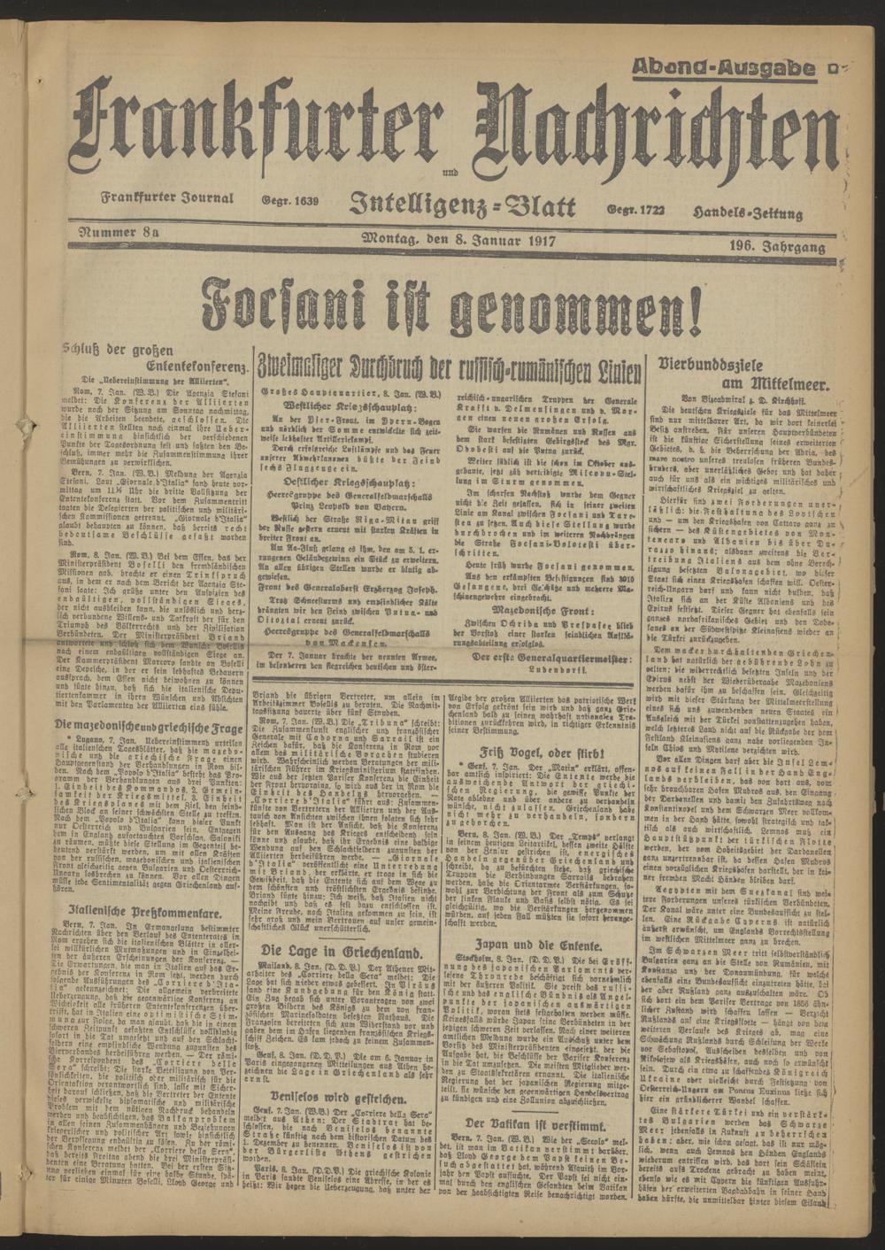 08.01.1917 Abend-Ausgabe = Nr. 8 a