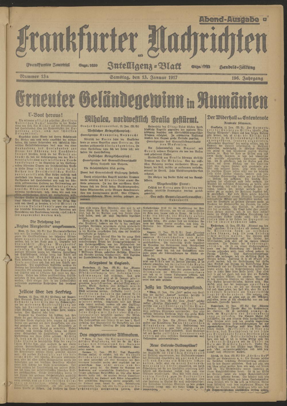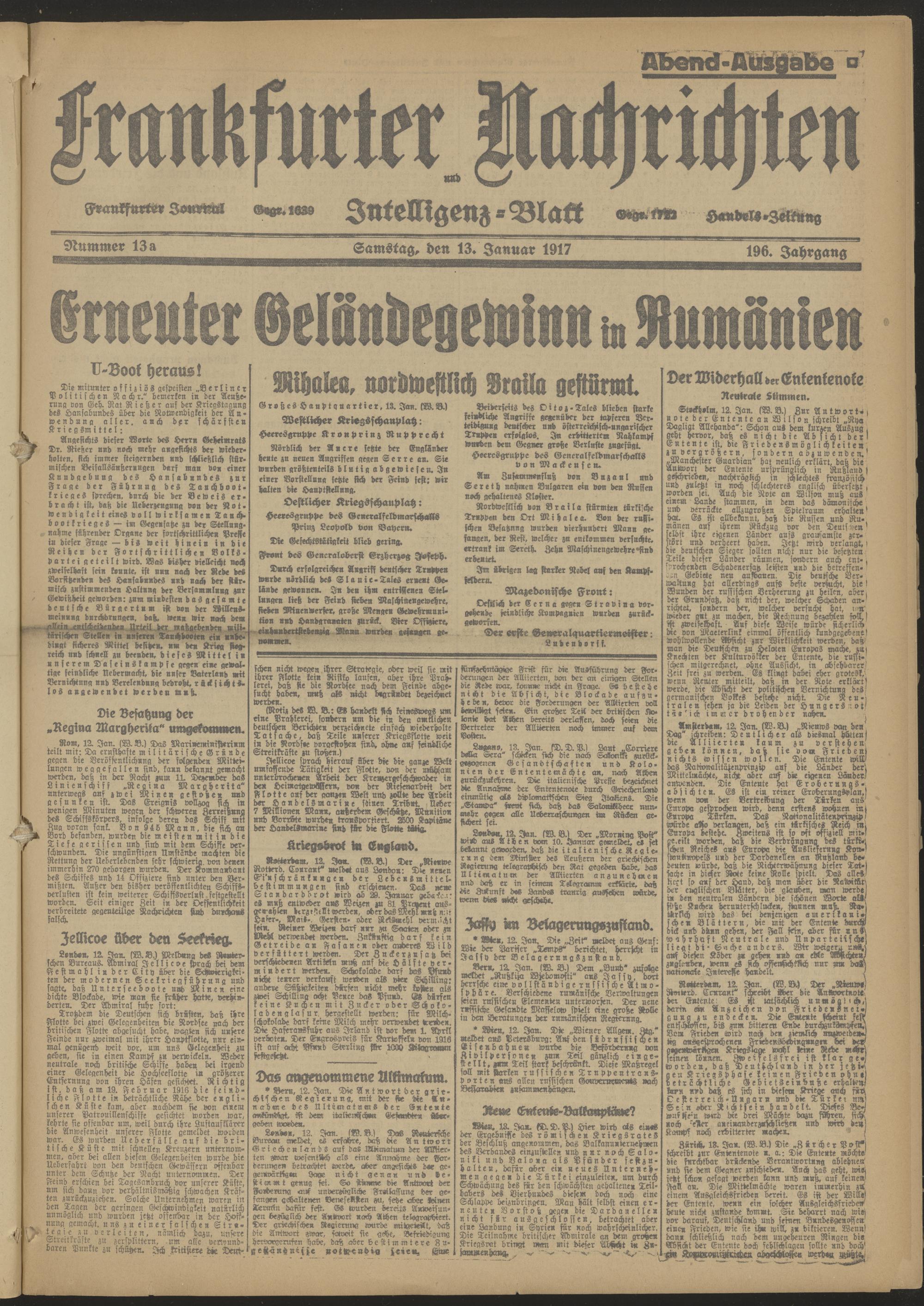 13.01.1917 Abend-Ausgabe = Nr. 13 a