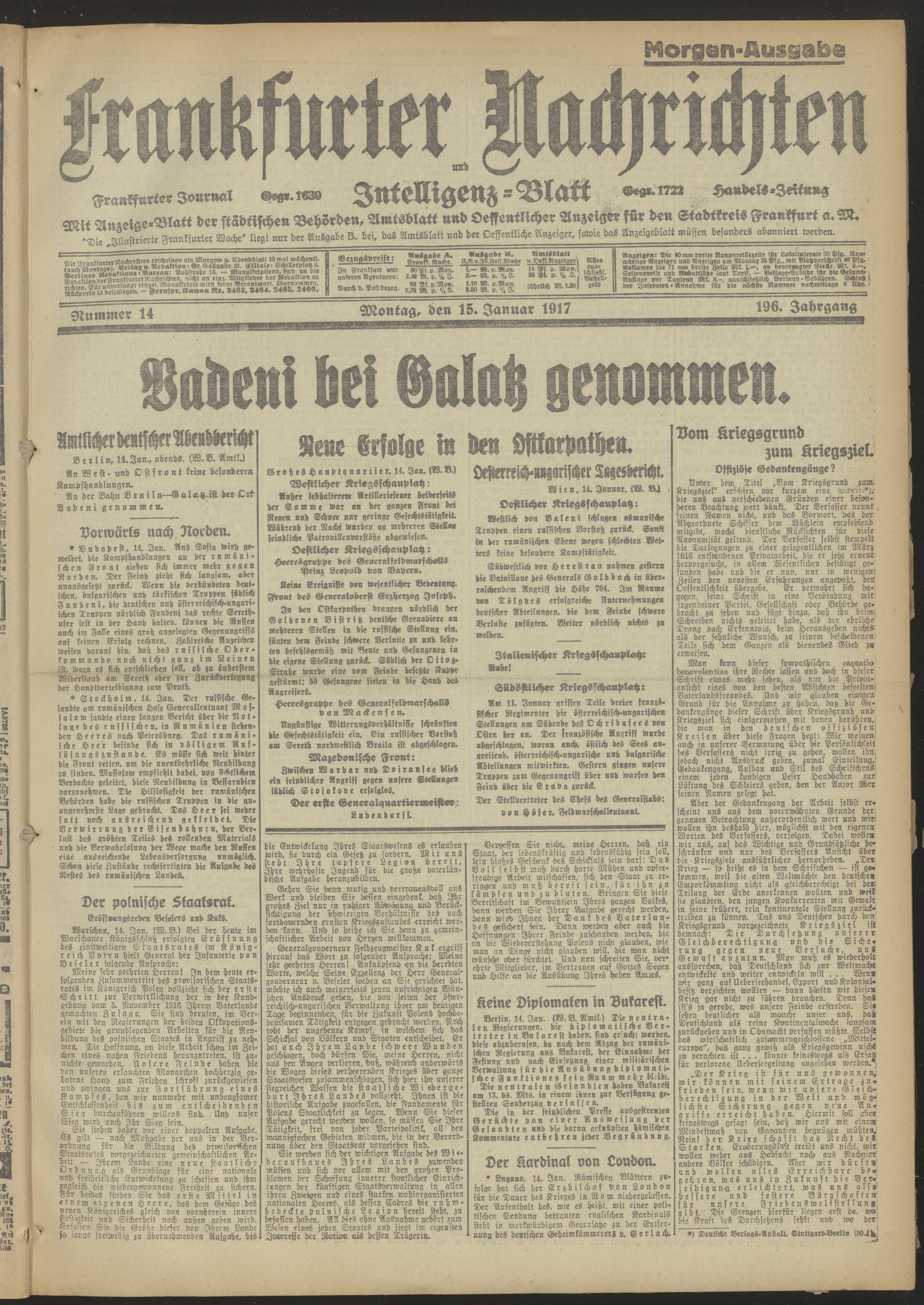 15.01.1917 Morgen-Ausgabe = Nr. 14