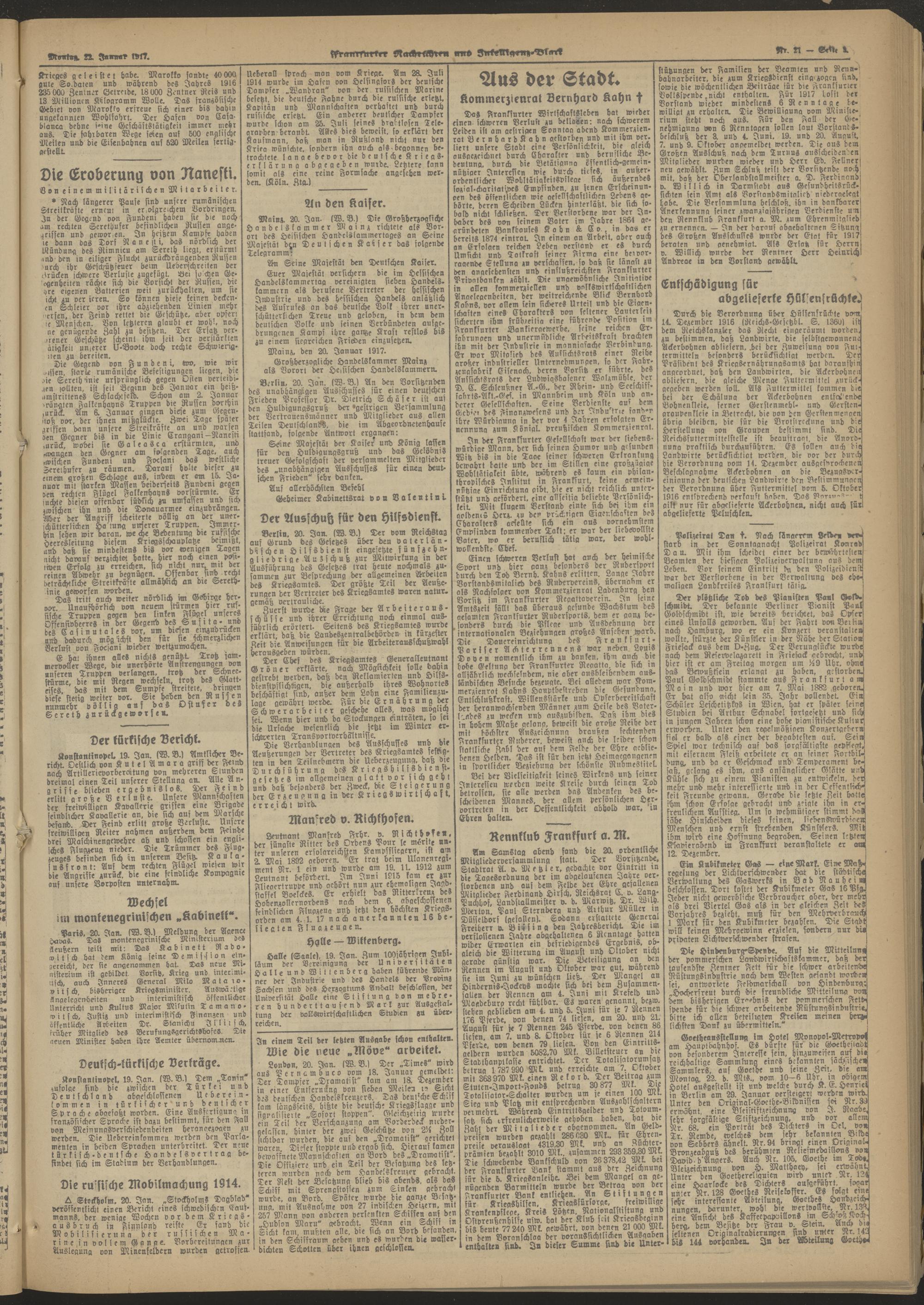 22.01.1917 Morgen-Ausgabe = Nr. 21