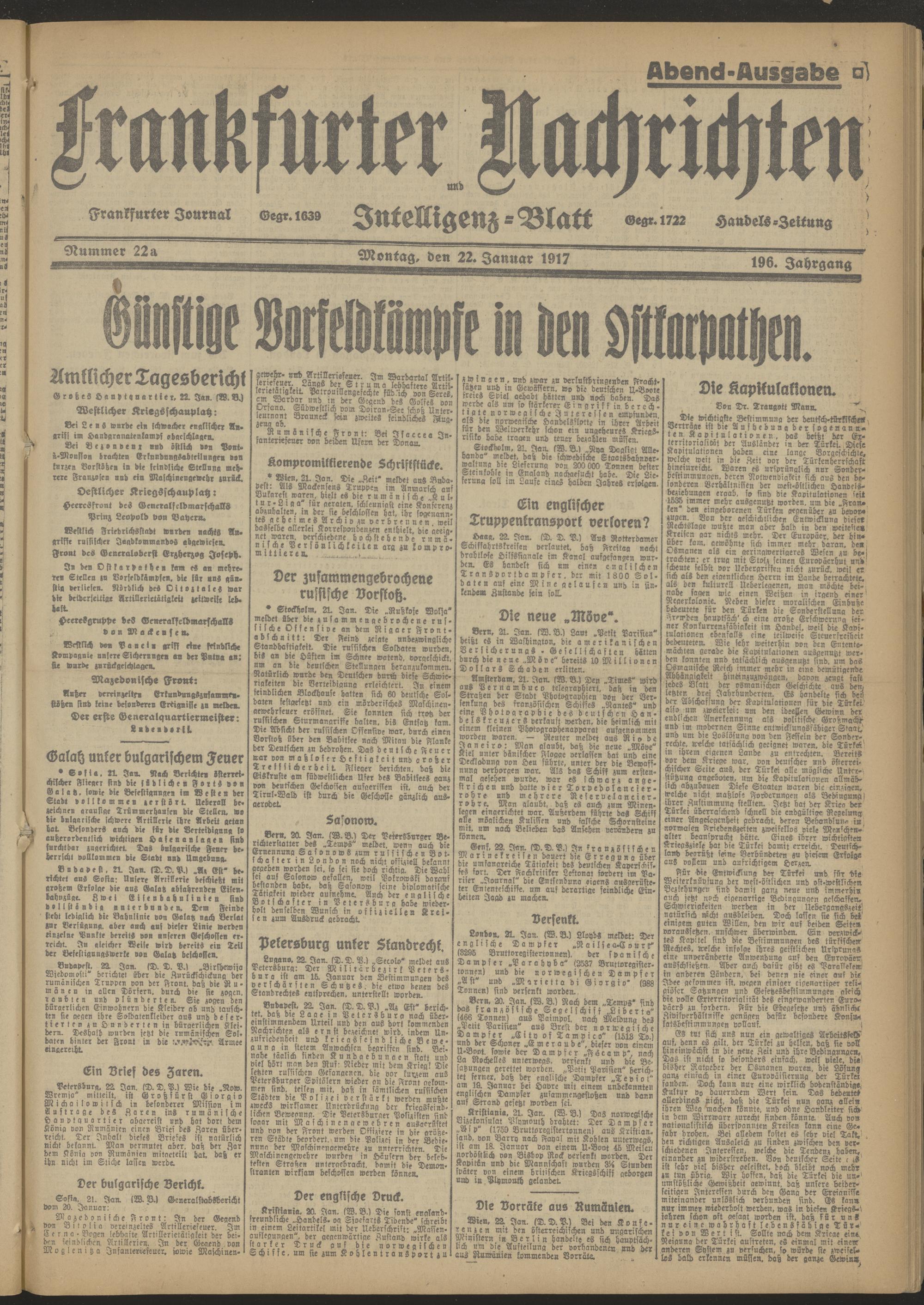 22.01.1917 Abend-Ausgabe = Nr. 22 a