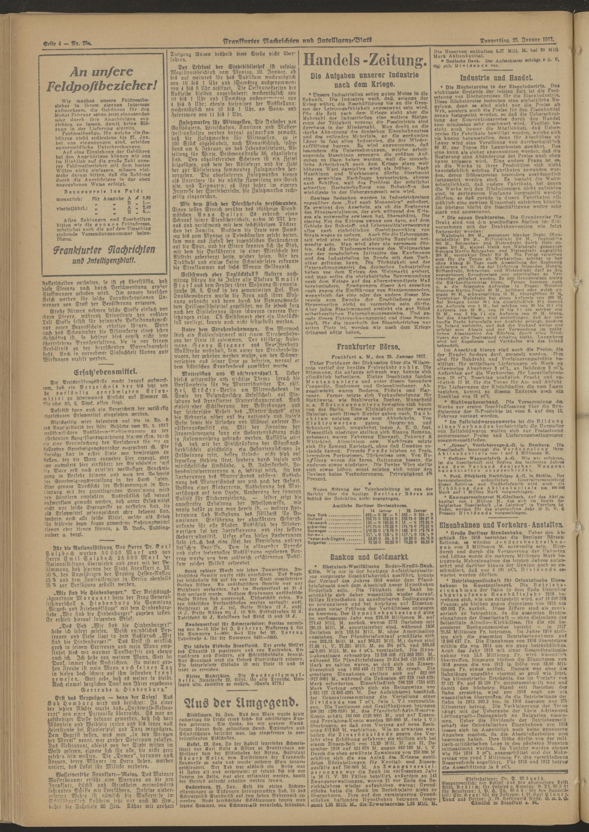 25.01.1917 Abend-Ausgabe = Nr. 25 a