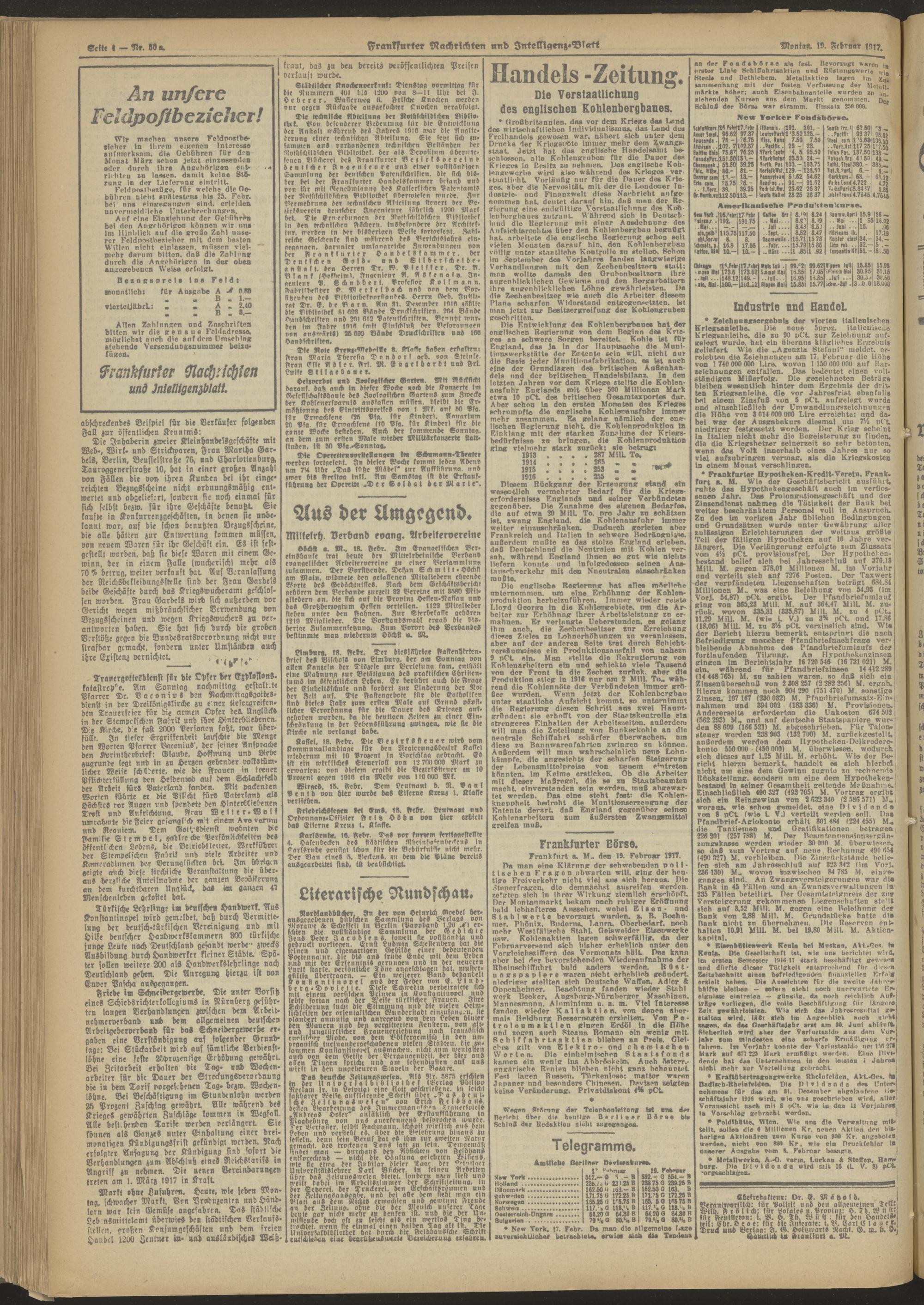 19.02.1917 Abend-Ausgabe = Nr. 50 a