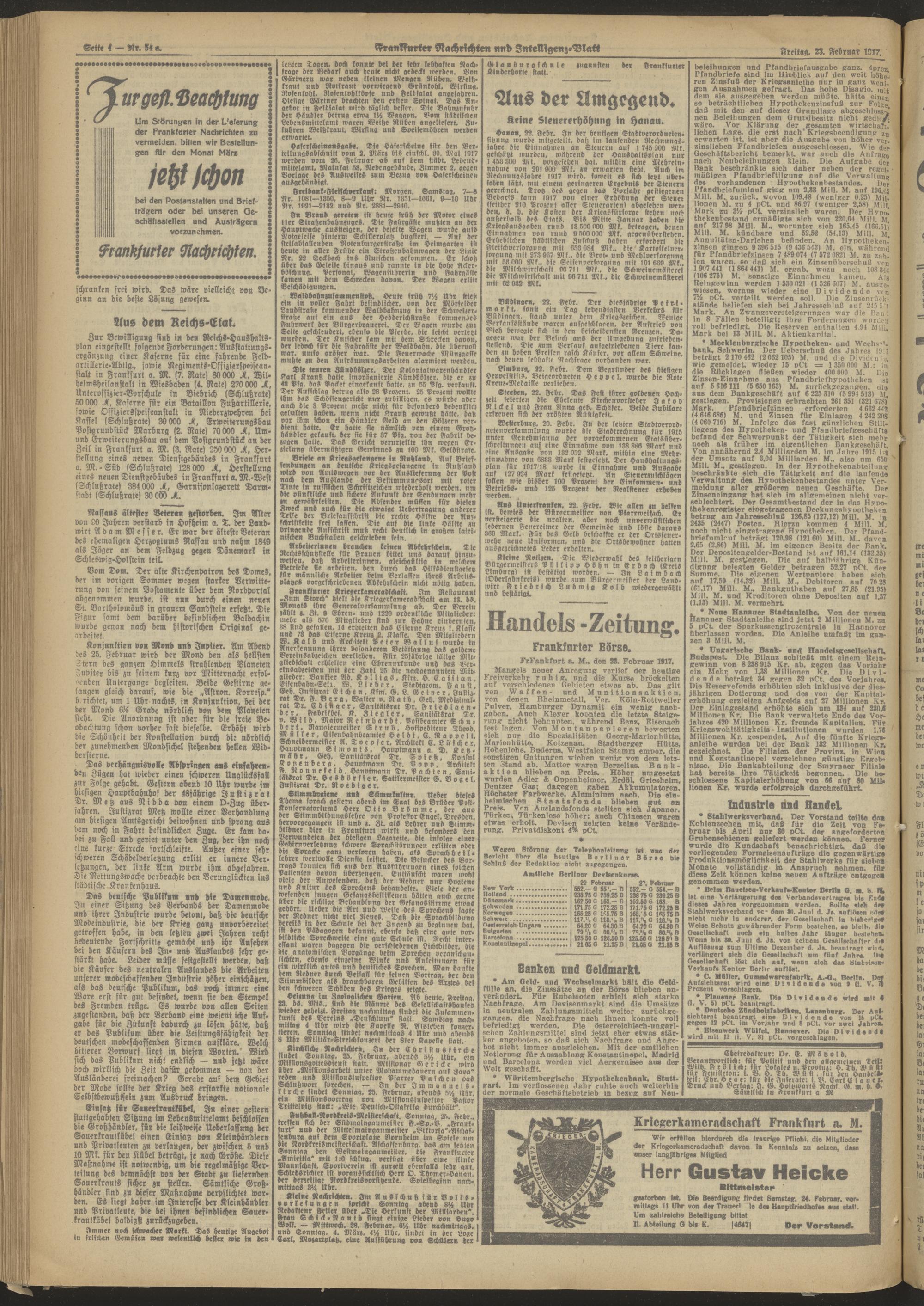 23.02.1917 Abend-Ausgabe = Nr. 54 a