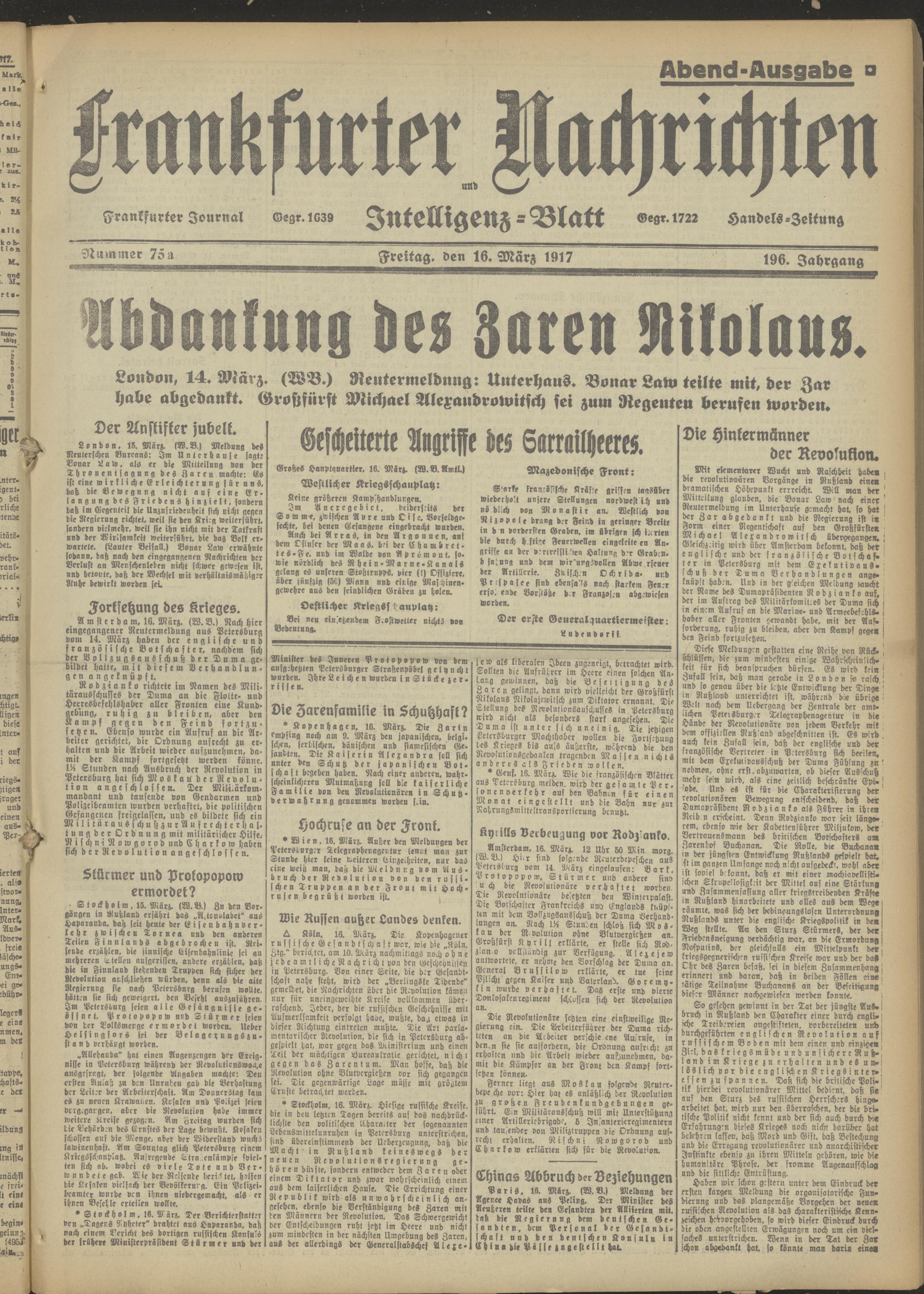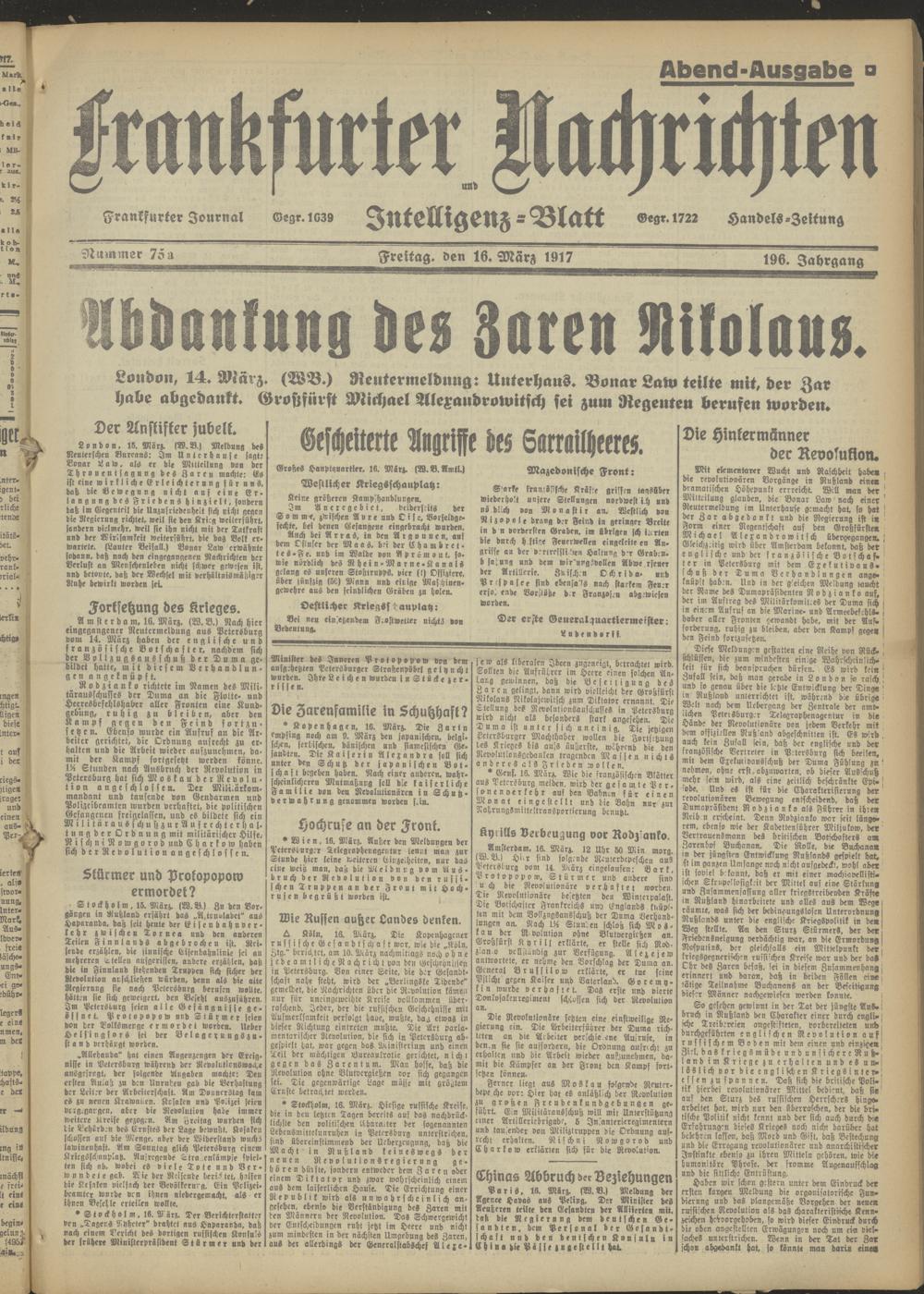 16.03.1917 Abend-Ausgabe = Nr. 75 a