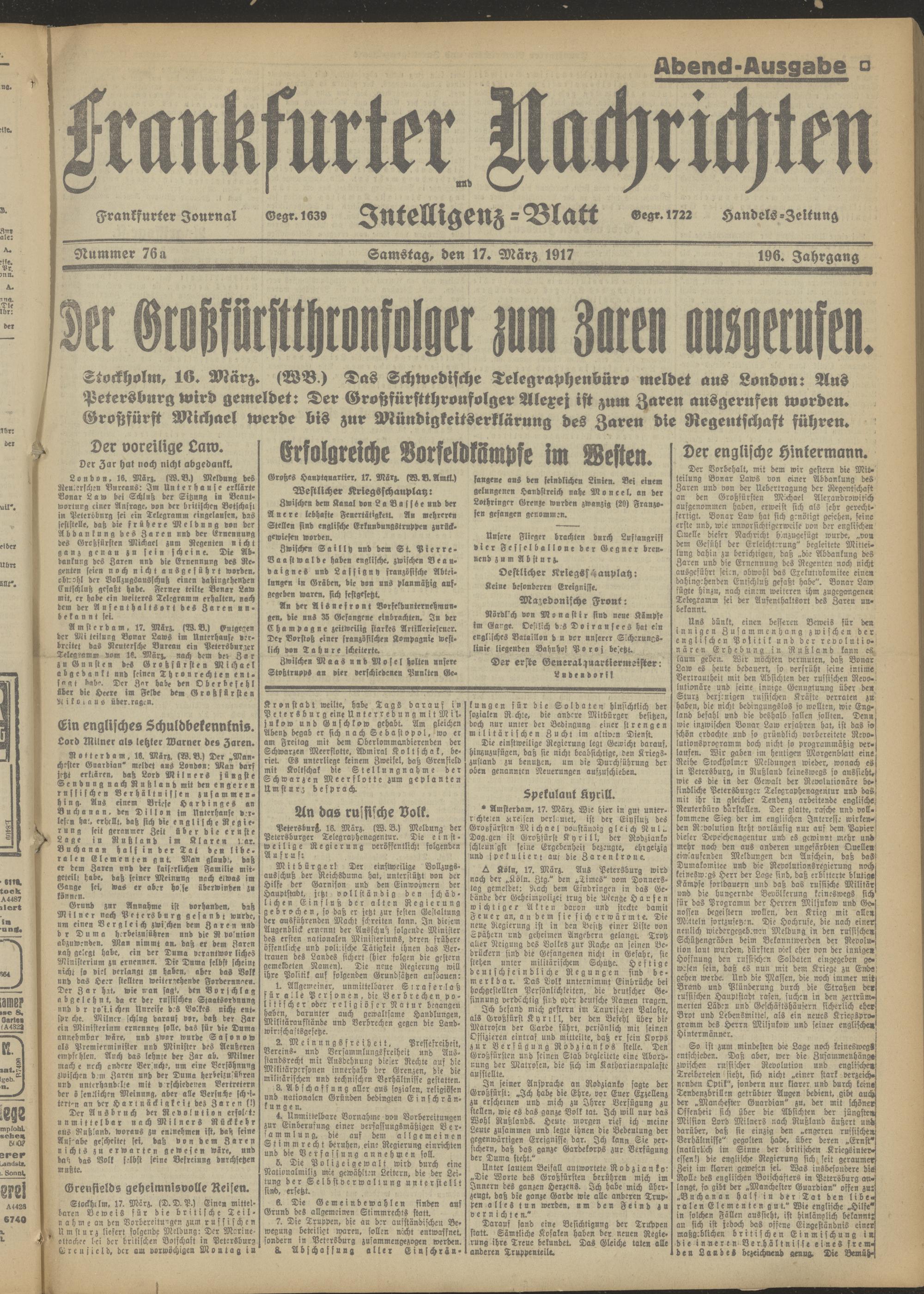 17.03.1917 Abend-Ausgabe = Nr. 76 a