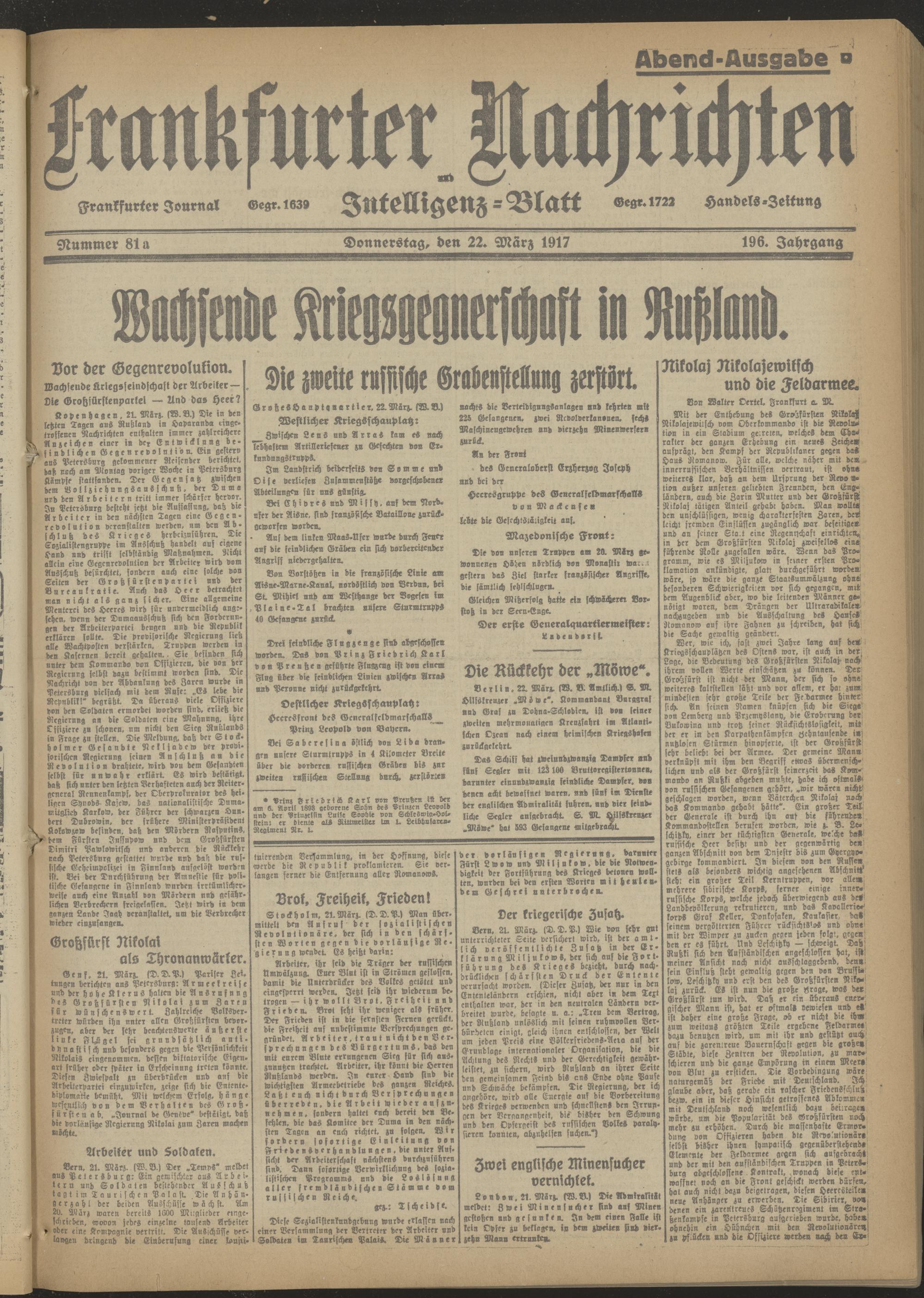 22.03.1917 Abend-Ausgabe = Nr. 81 a