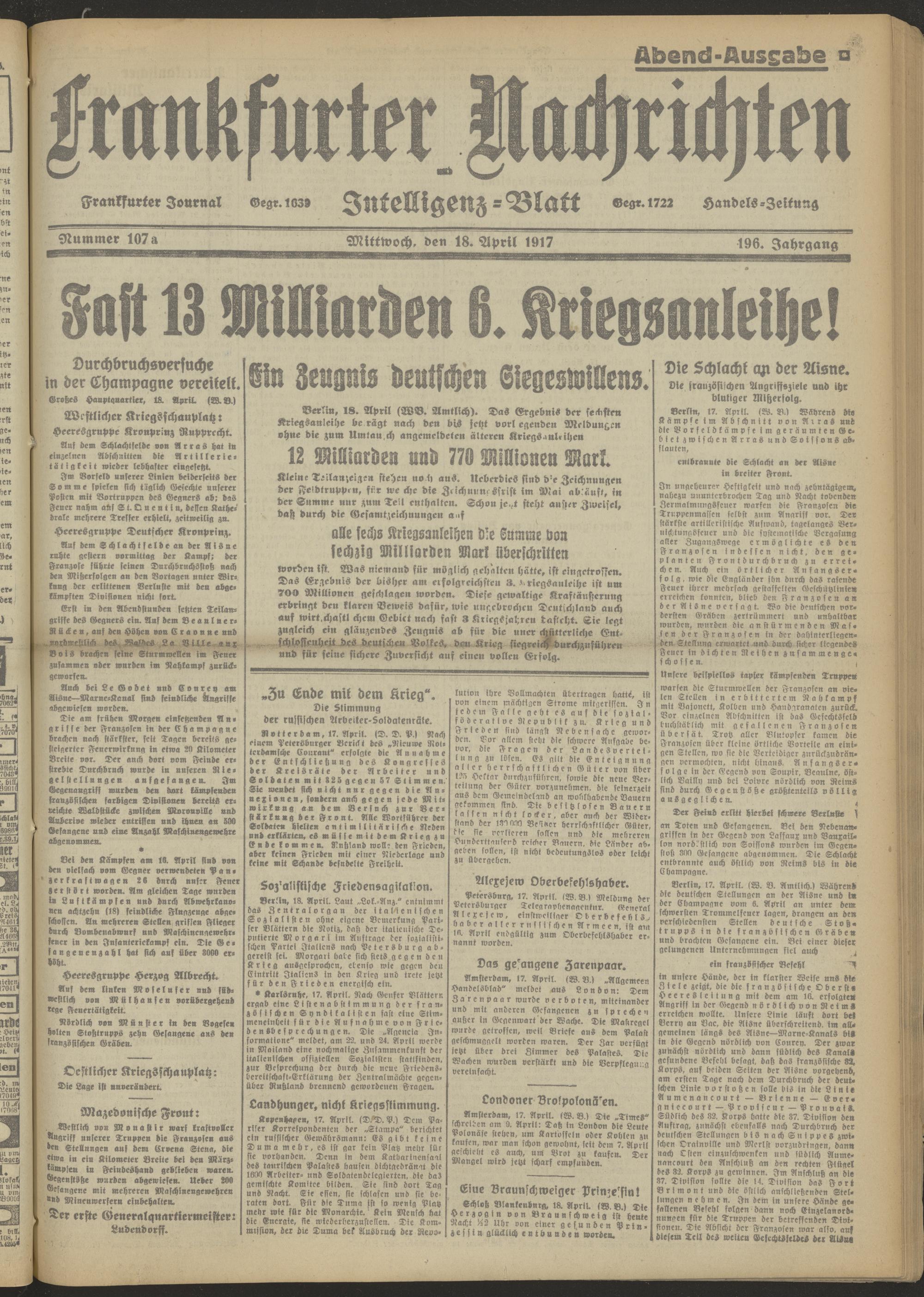 18.04.1917 Abend-Ausgabe = Nr. 107 a
