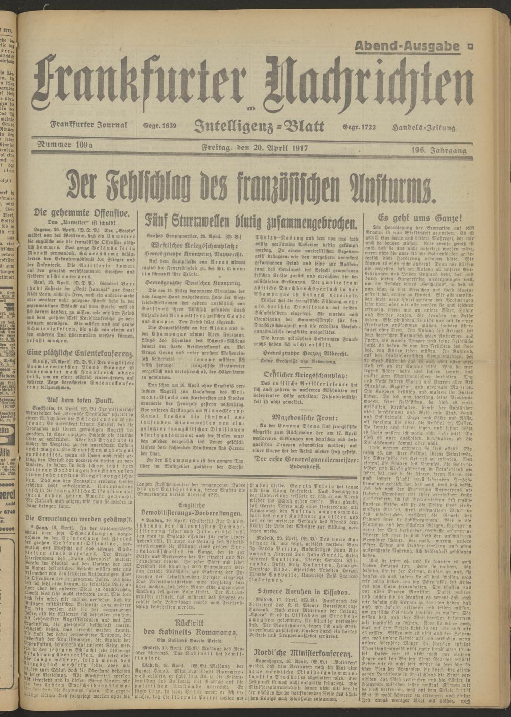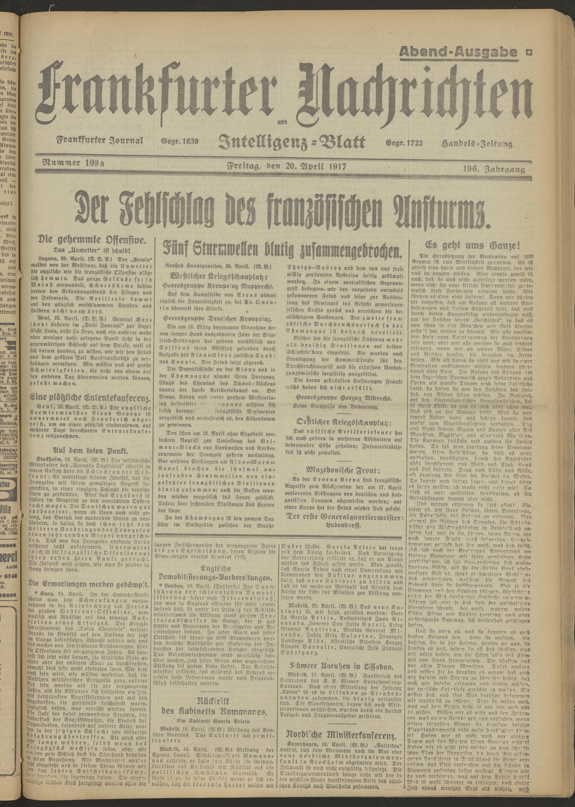 20.04.1917 Abend-Ausgabe = Nr. 109 a