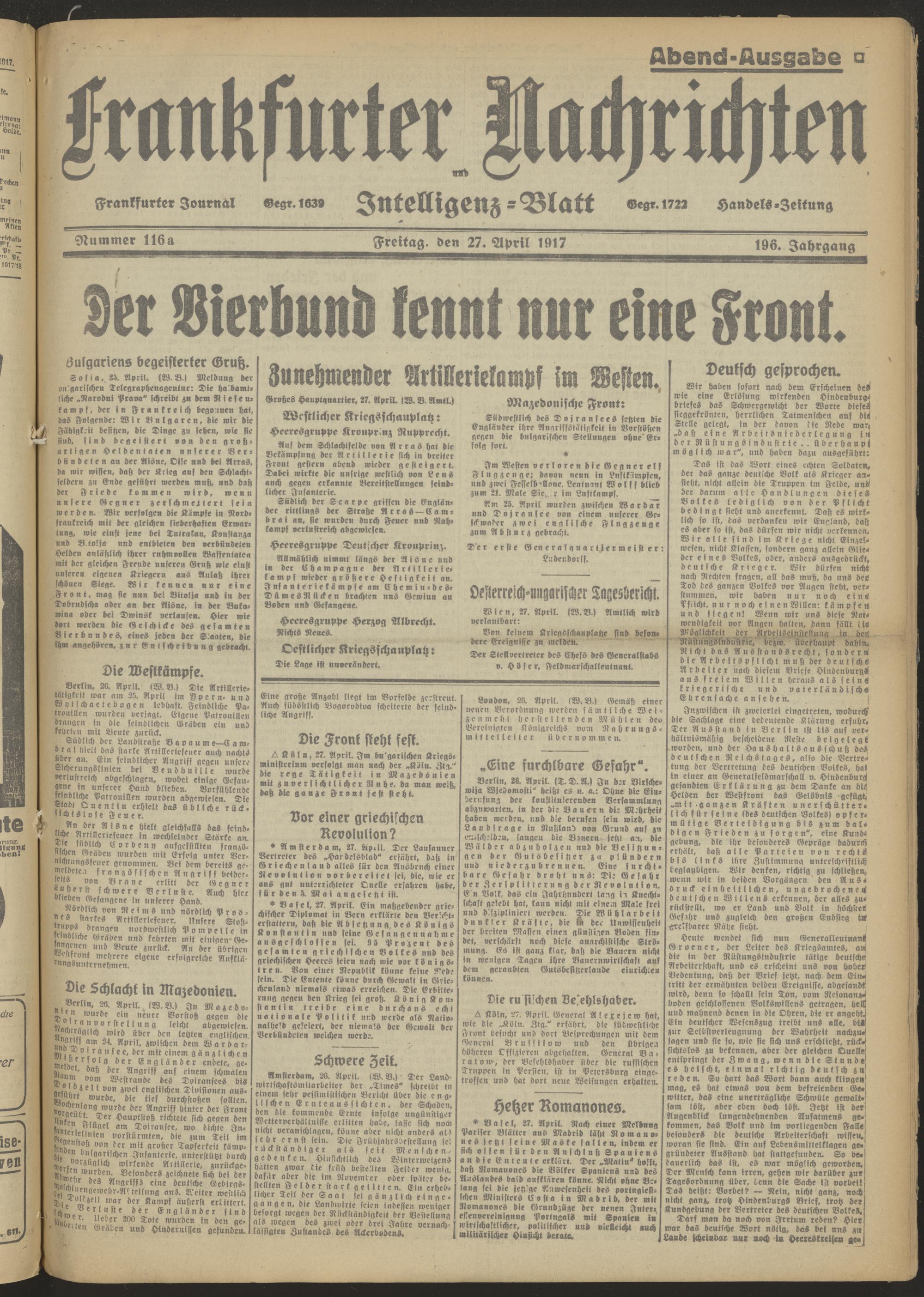 27.04.1917 Abend-Ausgabe = Nr. 116 a