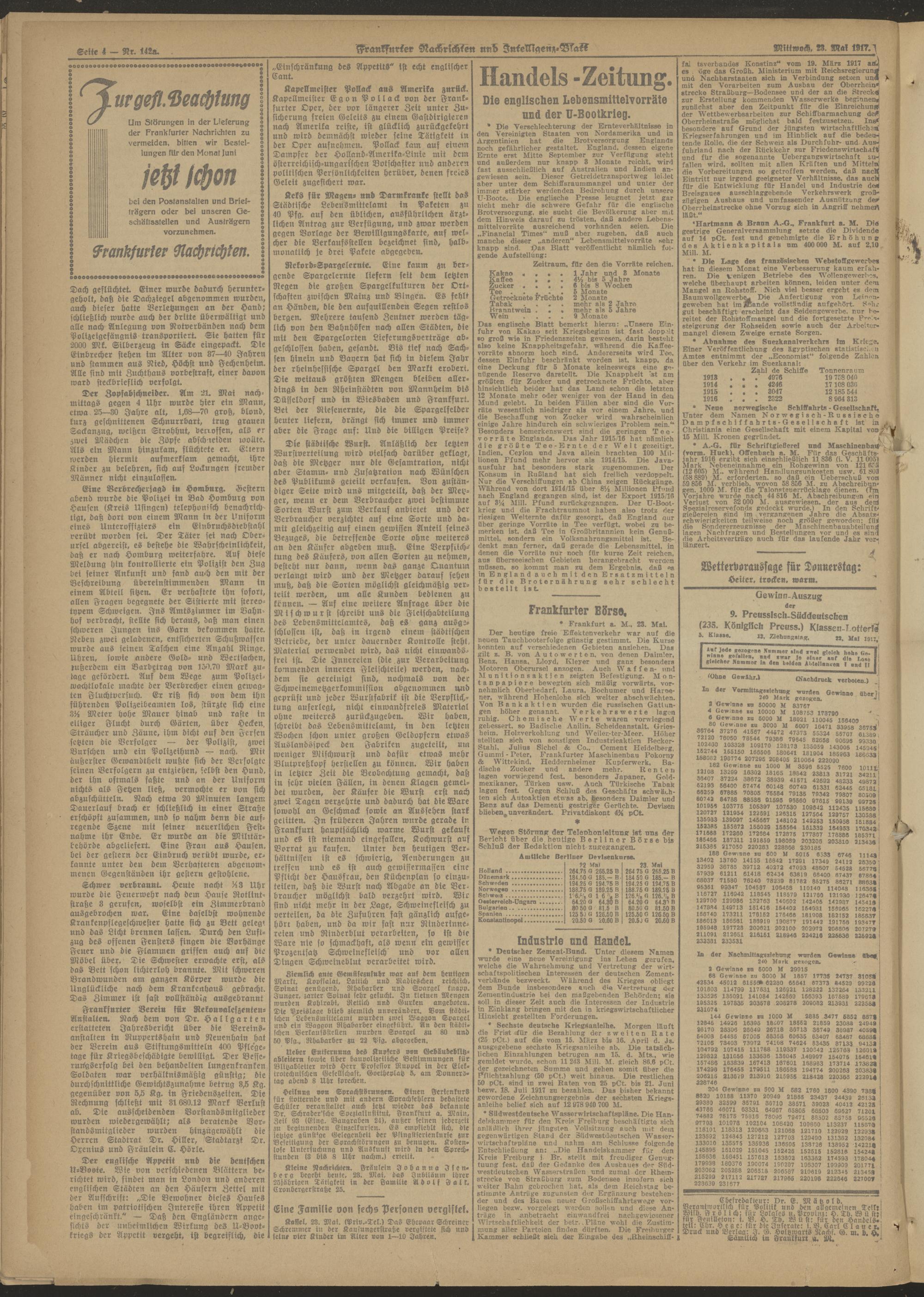 23.05.1917 Abend-Ausgabe = Nr. 142 a