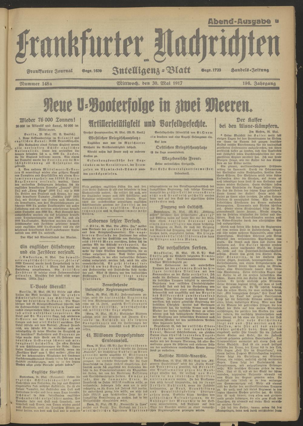 30.05.1917 Abend-Ausgabe = Nr. 148 a
