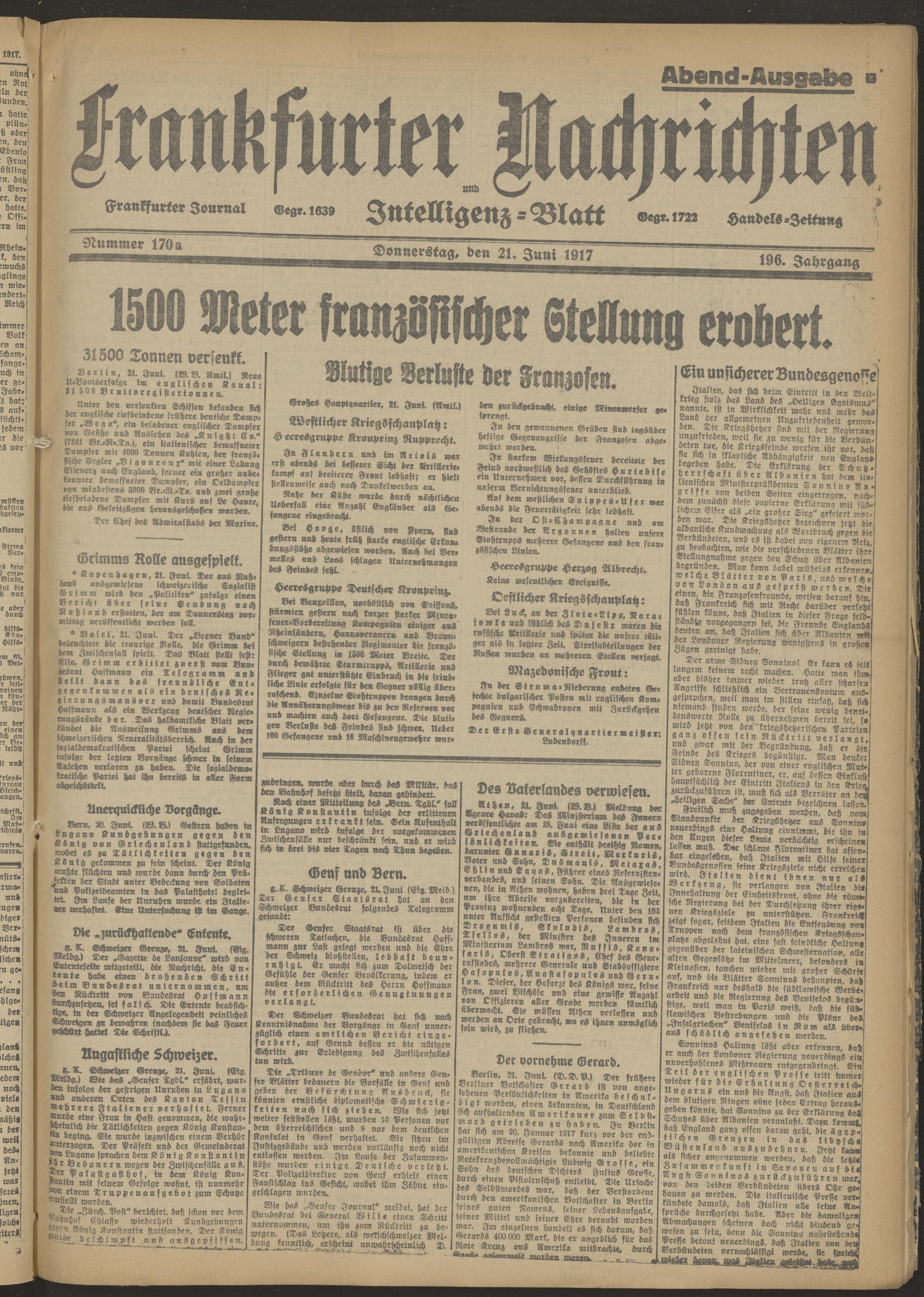 21.06.1917 Abend-Ausgabe = Nr. 170 a