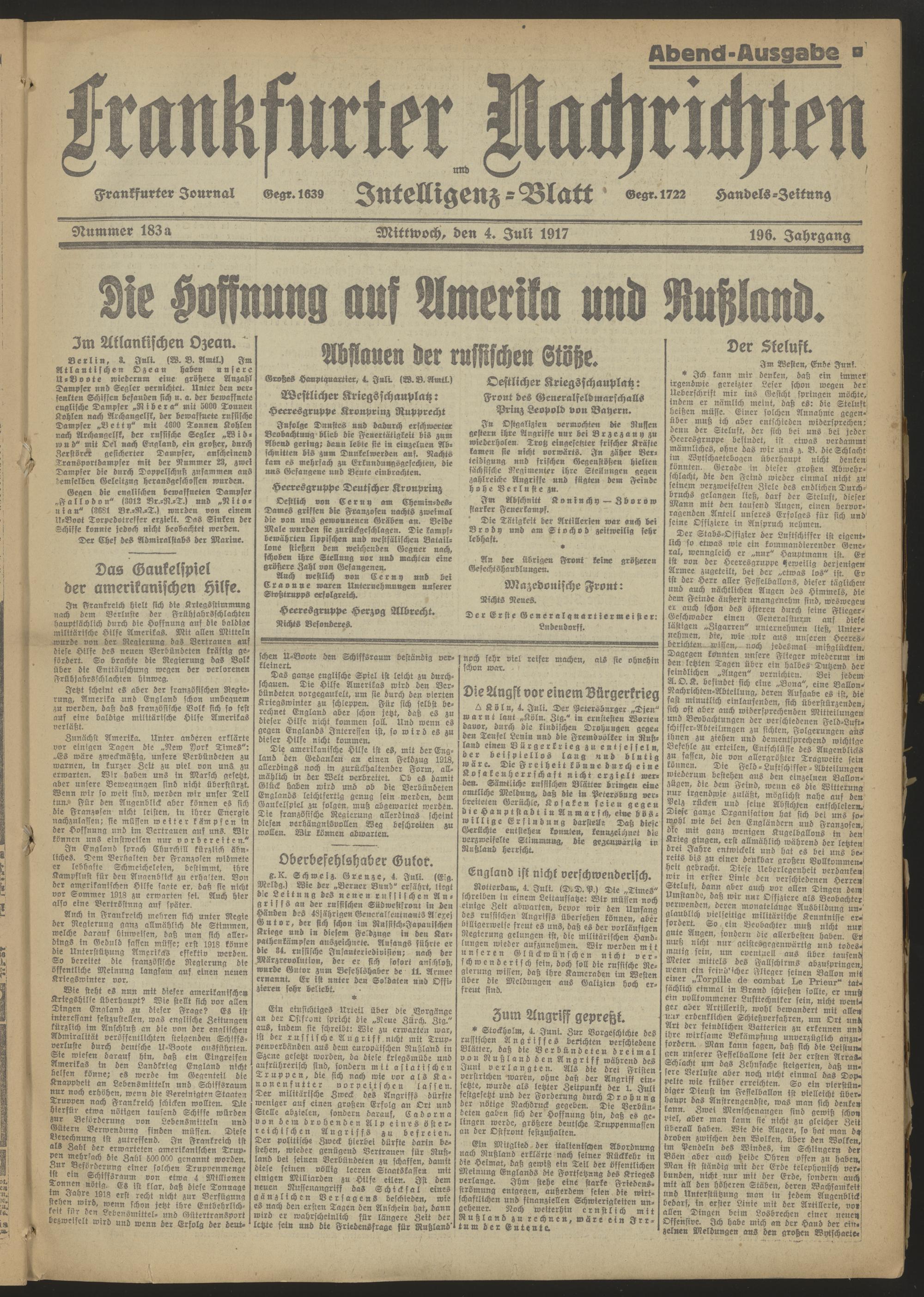 04.07.1917 Abend-Ausgabe = Nr. 183 a